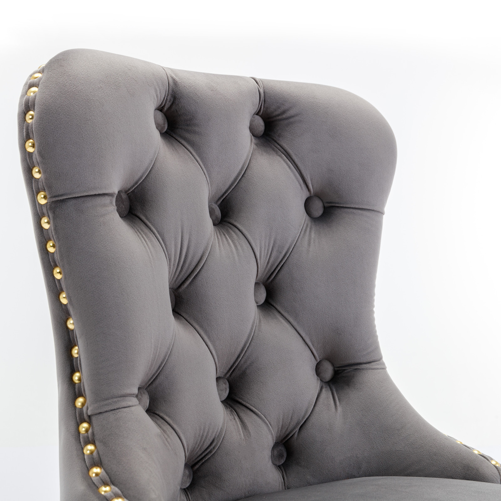 A&A Furniture,Thick Golden Swivel Velvet Barstools Adjusatble Seat Height From 25-33 Inch, Modern Upholstered Bar Stools With Backs Comfortable Tufted For Home Pub And Kitchen Island Gray,Set Of 2
