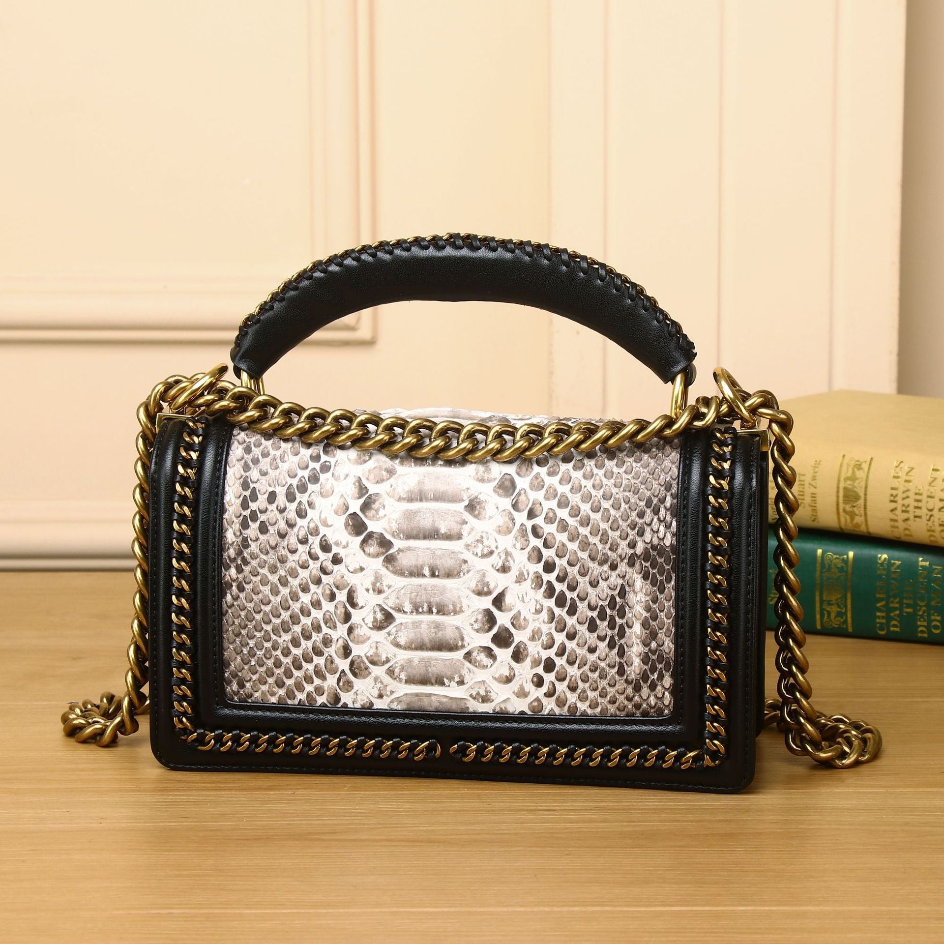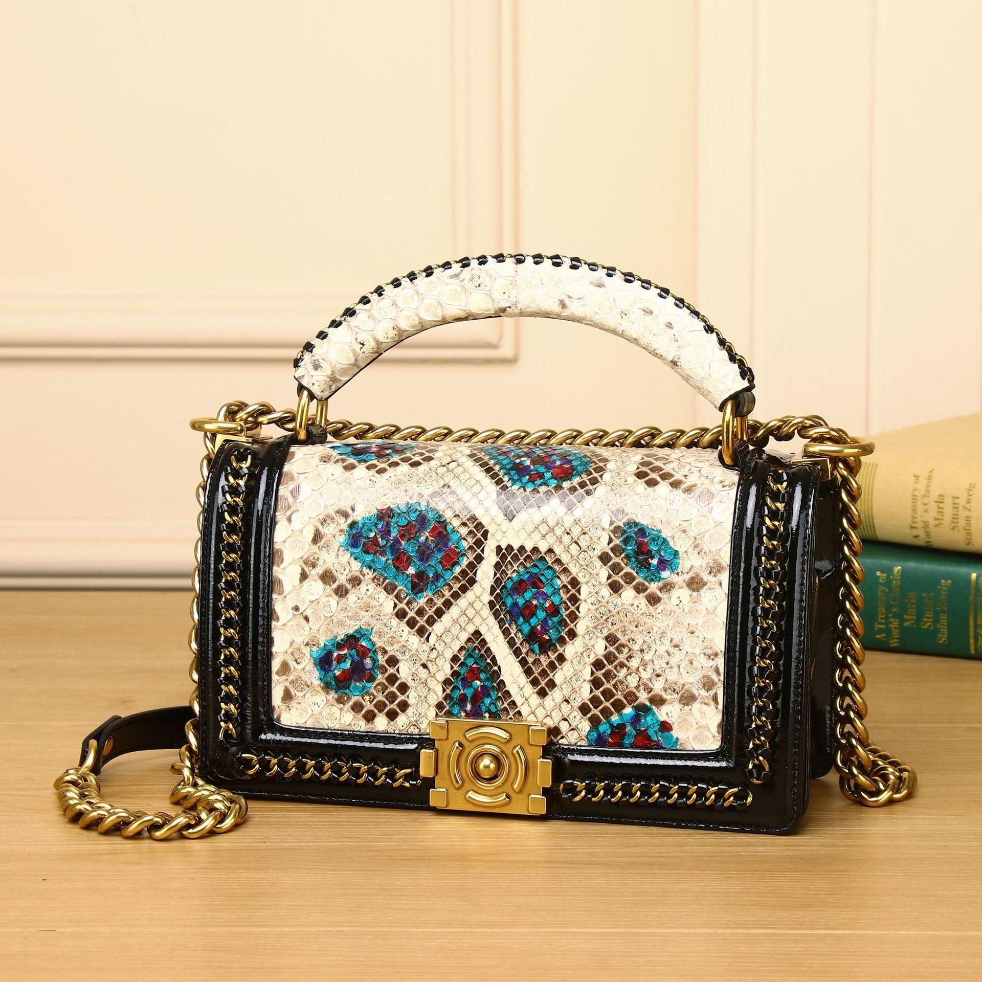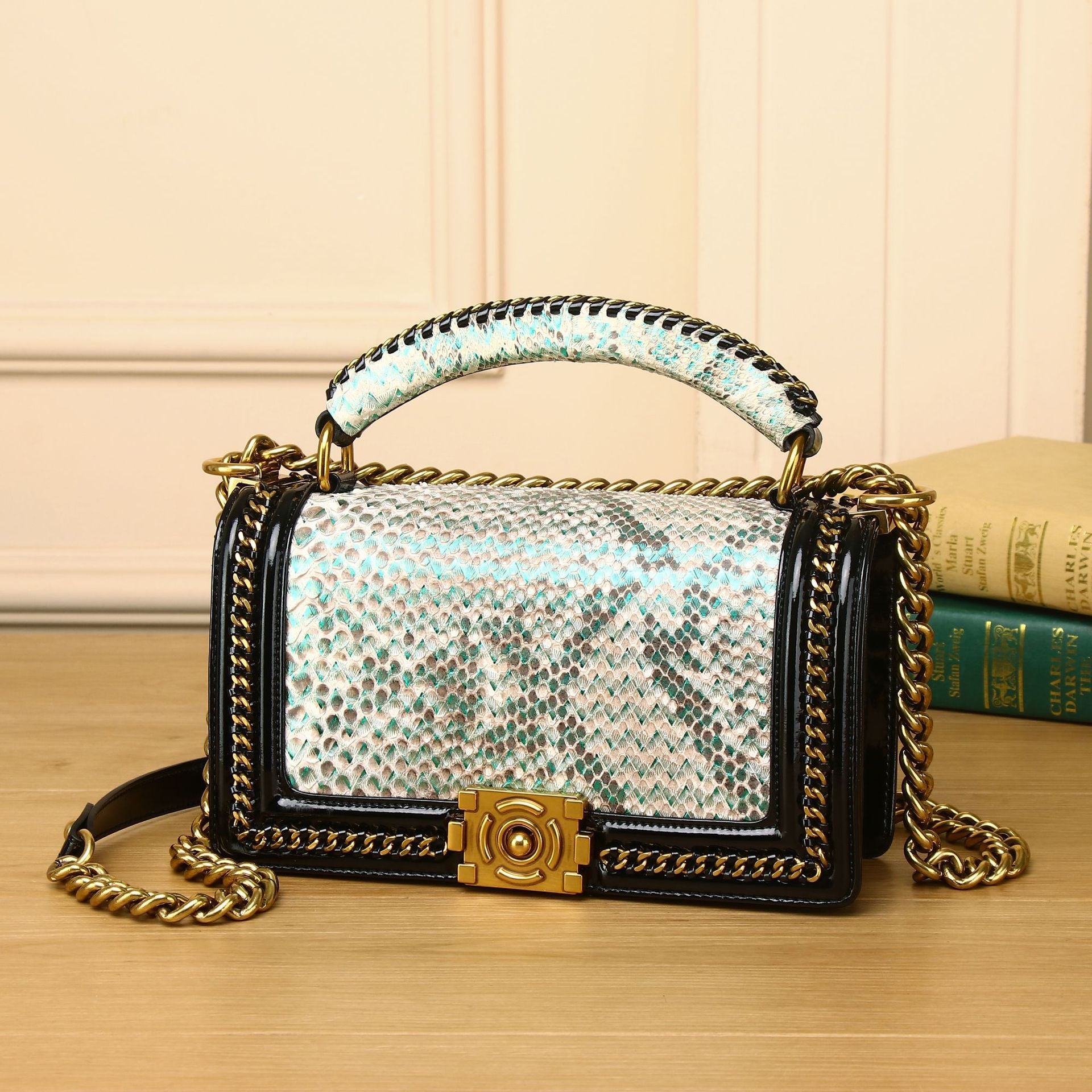 حقيبة مربعة صغيرة أنيقة ذات سلسلة محمولة باليد على الكتف بتصميم قطري