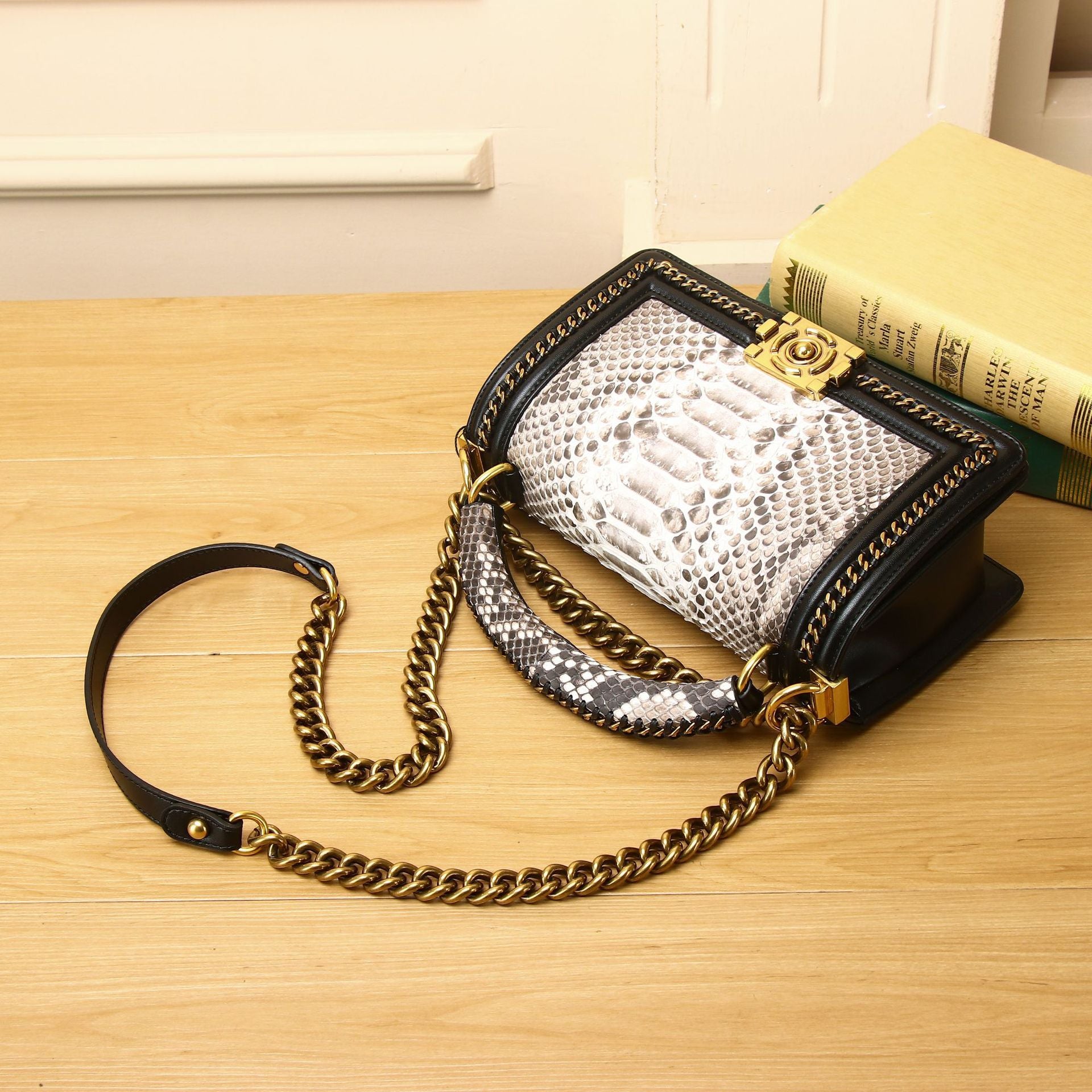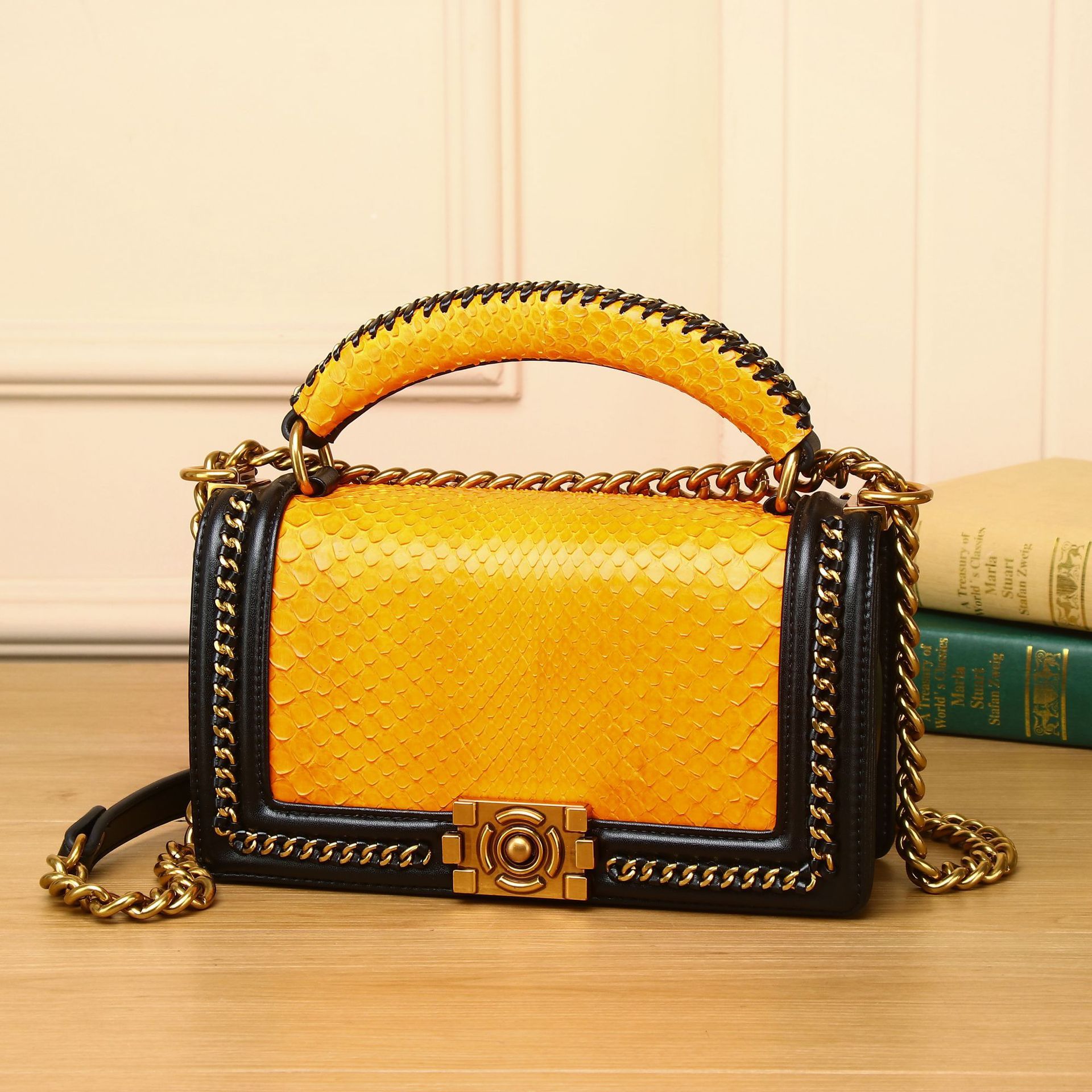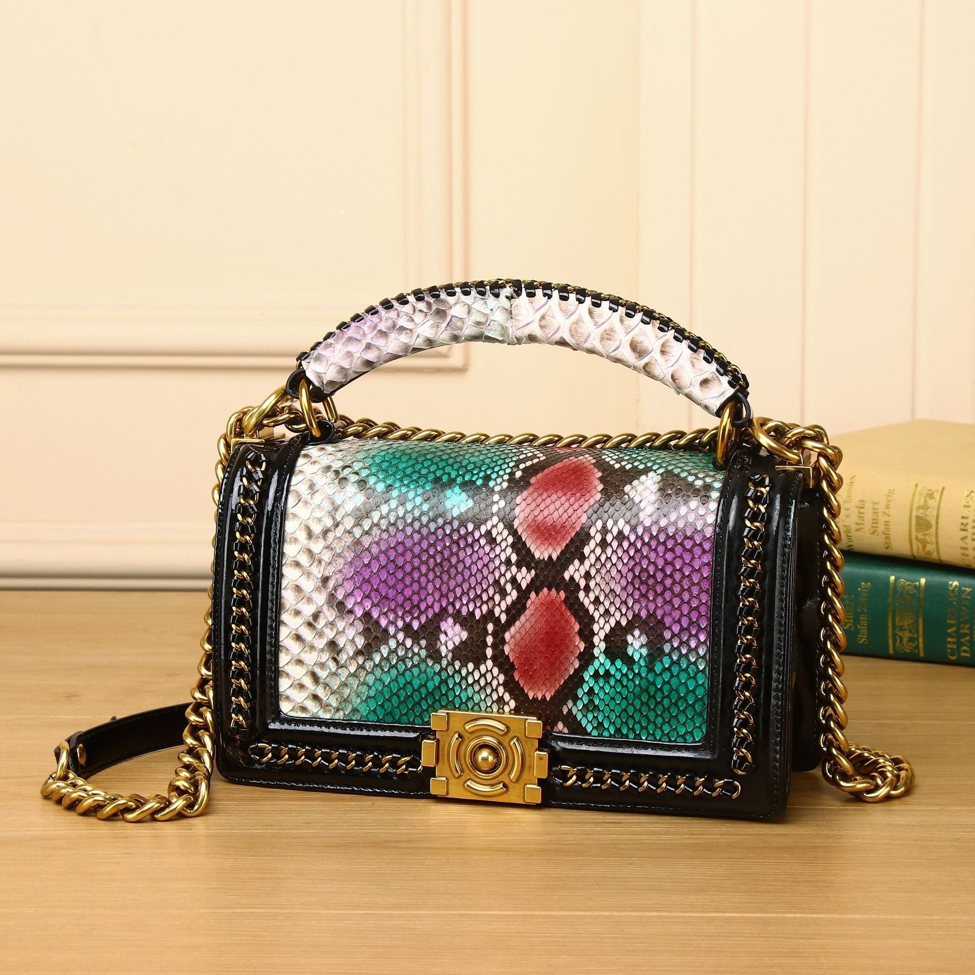 حقيبة مربعة صغيرة أنيقة ذات سلسلة محمولة باليد على الكتف بتصميم قطري