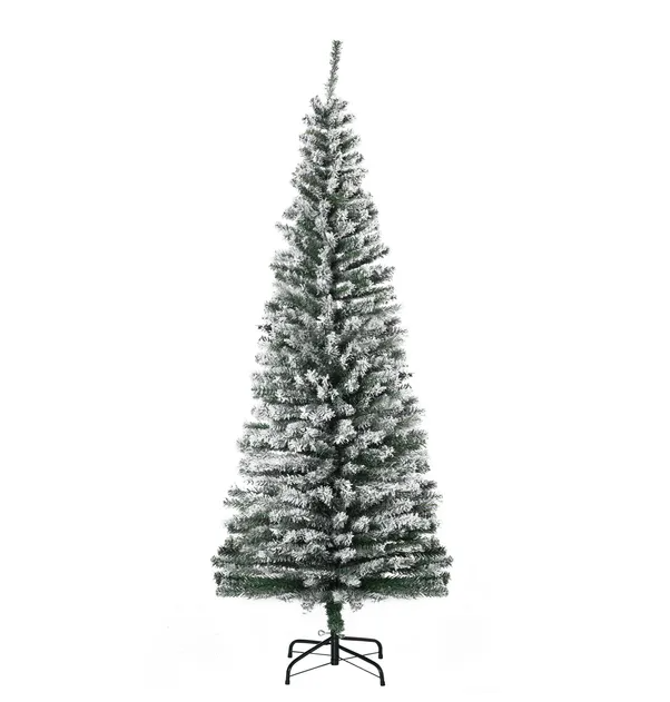 HOMCOM 6ft Artificial Snow Flocked Christmas Tree With Foldable Steel Stand Home Indoor Decoration Green