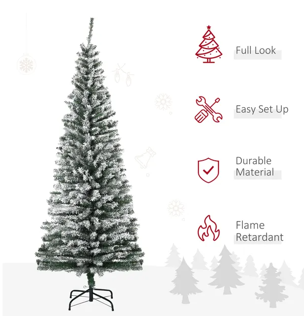 Bring nature home without the mess with this artificial Christmas tree from HOMCOM. Our beautiful holiday tree provides a great alternative to conventional trees with easy setup and little mess or maintenance required. Designed in a full pine tree shape, this artificial flocked Christmas tree consists of full-bodied and realistic plastic tips. This snow-flocked tree is sure to be a striking centerpiece for your family's holiday décor this year and in years to come.