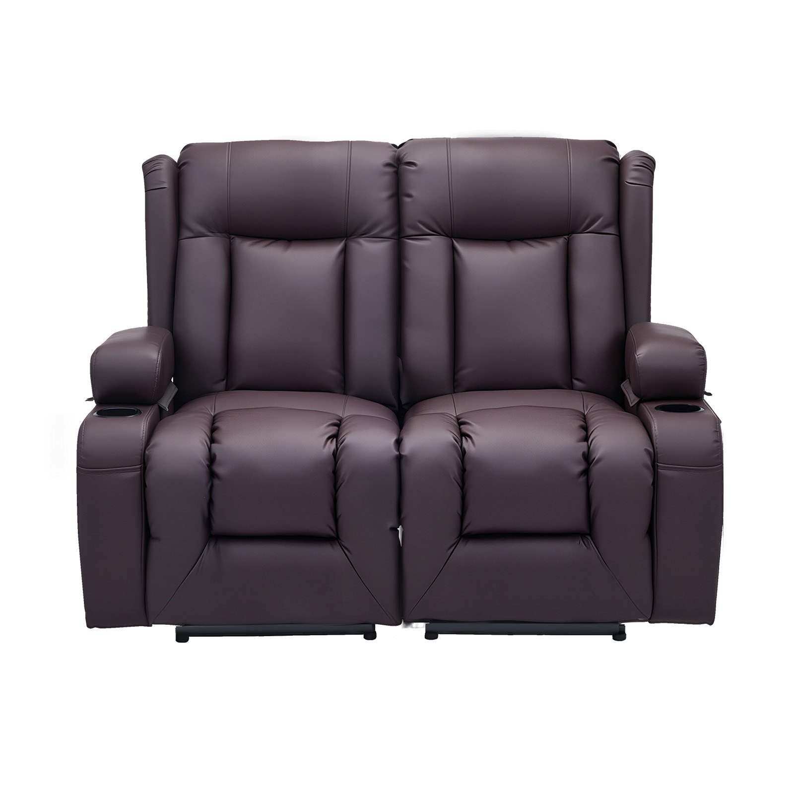 Loveseat Recliner Sofa, Power Reclining Couch With Heating & Massage And Timer, PU Leather Electric Recliner Sofa With USB Ports, Cup Holders And Side Bags, Dual Loveseat Chair For Living Room