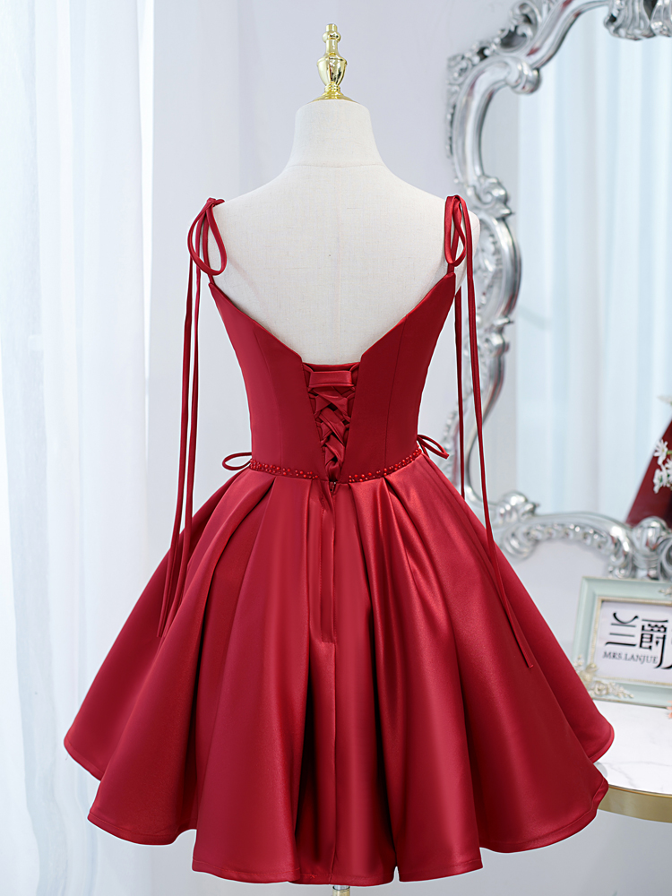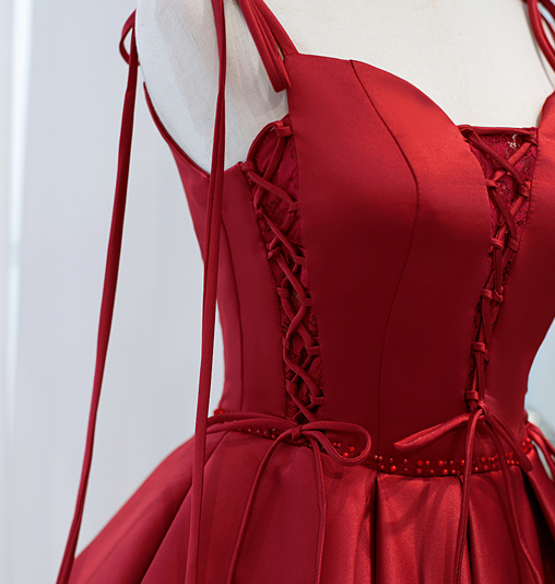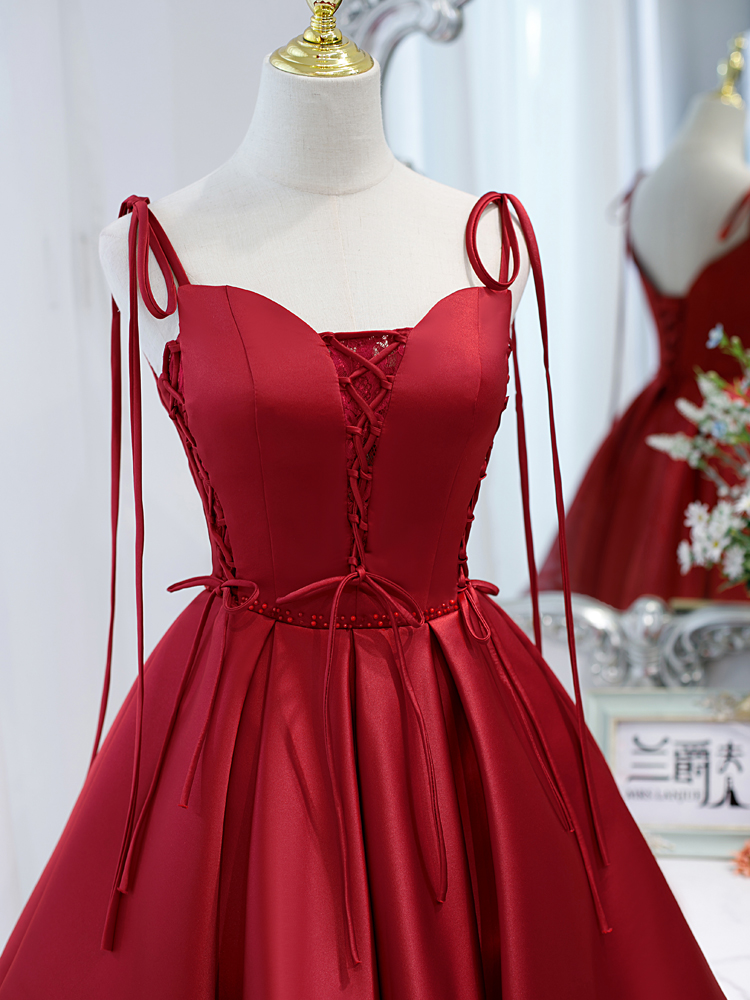 Wine Red Satin Lady's Slimming Annual Meeting Light Luxury Dress