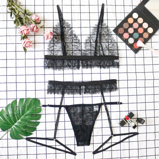 Women's Fashion Three-piece Set Lace See-through Three-point UnderwearVendor:KissGlowRegular price $42.00 CADRegular priceUnit price / per-