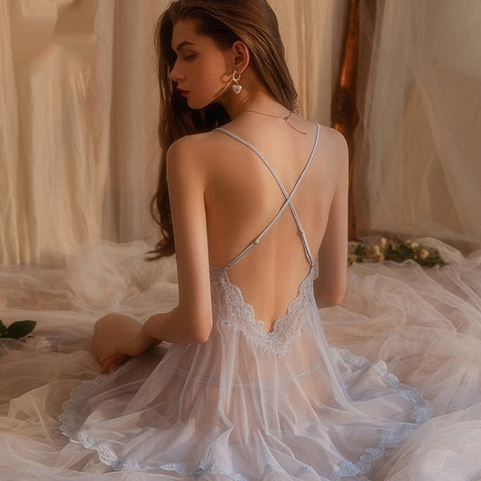 Lace Stitched Backless V-neck Home NightdressVendor:KissGlowRegular price $56.00 CADRegular priceUnit price / per-