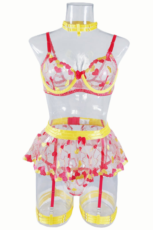 Ruffled Love Embroidered Mesh See-through Sexy Lingerie