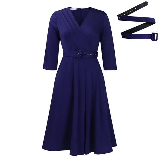Fashionable Temperament Elegant V-neck Pleated Swing Dress