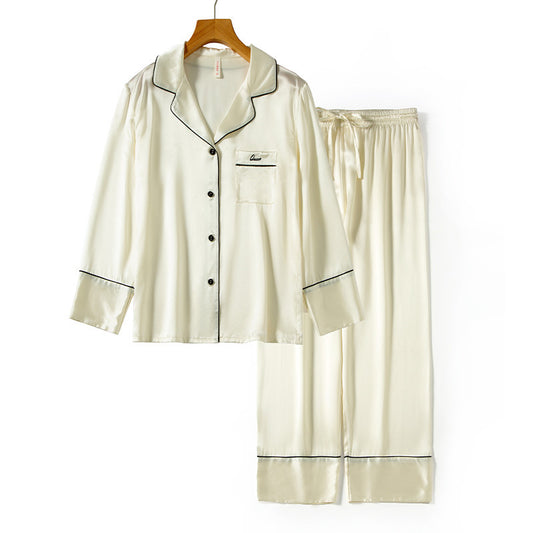 Home Wear Suit Pajamas Women's Artificial Silk Long Sleeve Trousers Suit