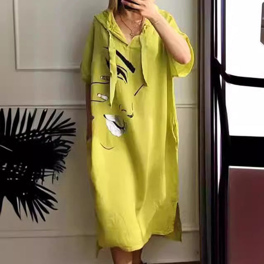 New Fashion Printed Square Collar Waist-tight Mid-sleeve Dress