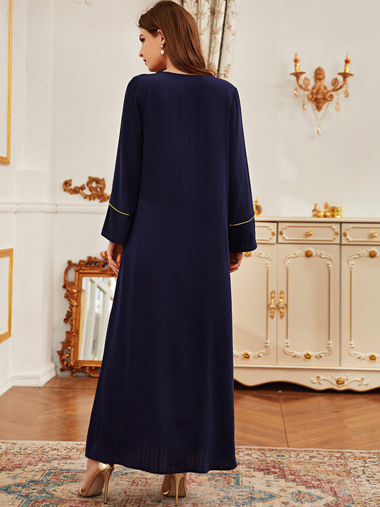 Plus Size Women's Retro National Style Blue Embroidery Ethnic Long Skirt