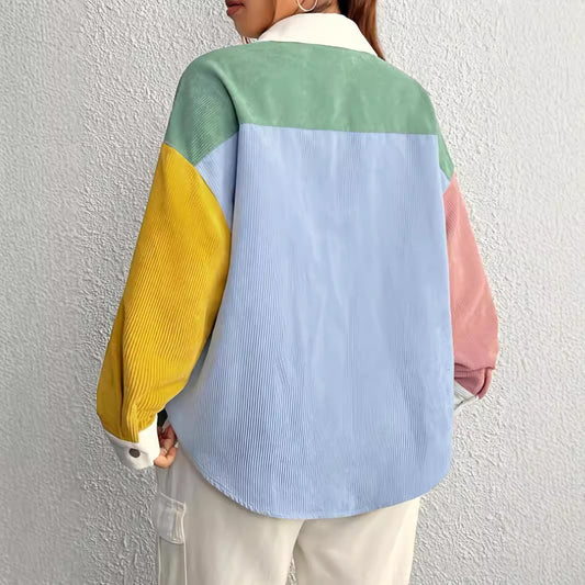 Corduroy Color Contrast Patchwork Loose Thin Versatile Casual Coat Cardigan Shirt