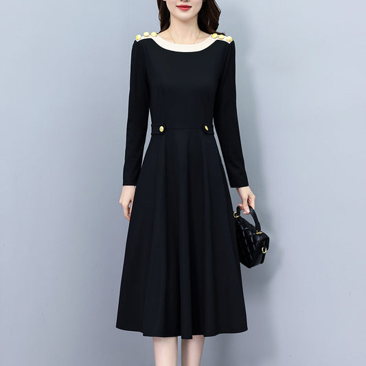 Color matching stylish plus size women's clothing fat mm slim fit medium and long style wide lady long sleeve dress spring and autumn new style