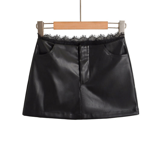Lace Sexy Low Waist PU Leather Skirt Casual Short Skirt