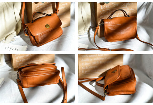 Sac à bandoulière de style rétro en cuir de vachette avec couche supérieure
