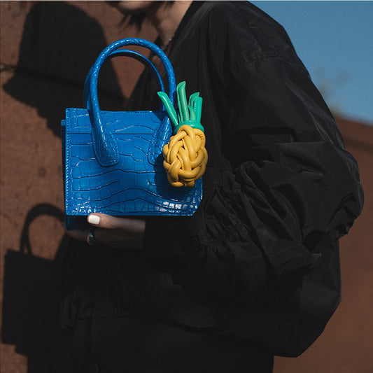 Sac à bandoulière tissé à six grilles décoré avec boucle triangulaire pour femme