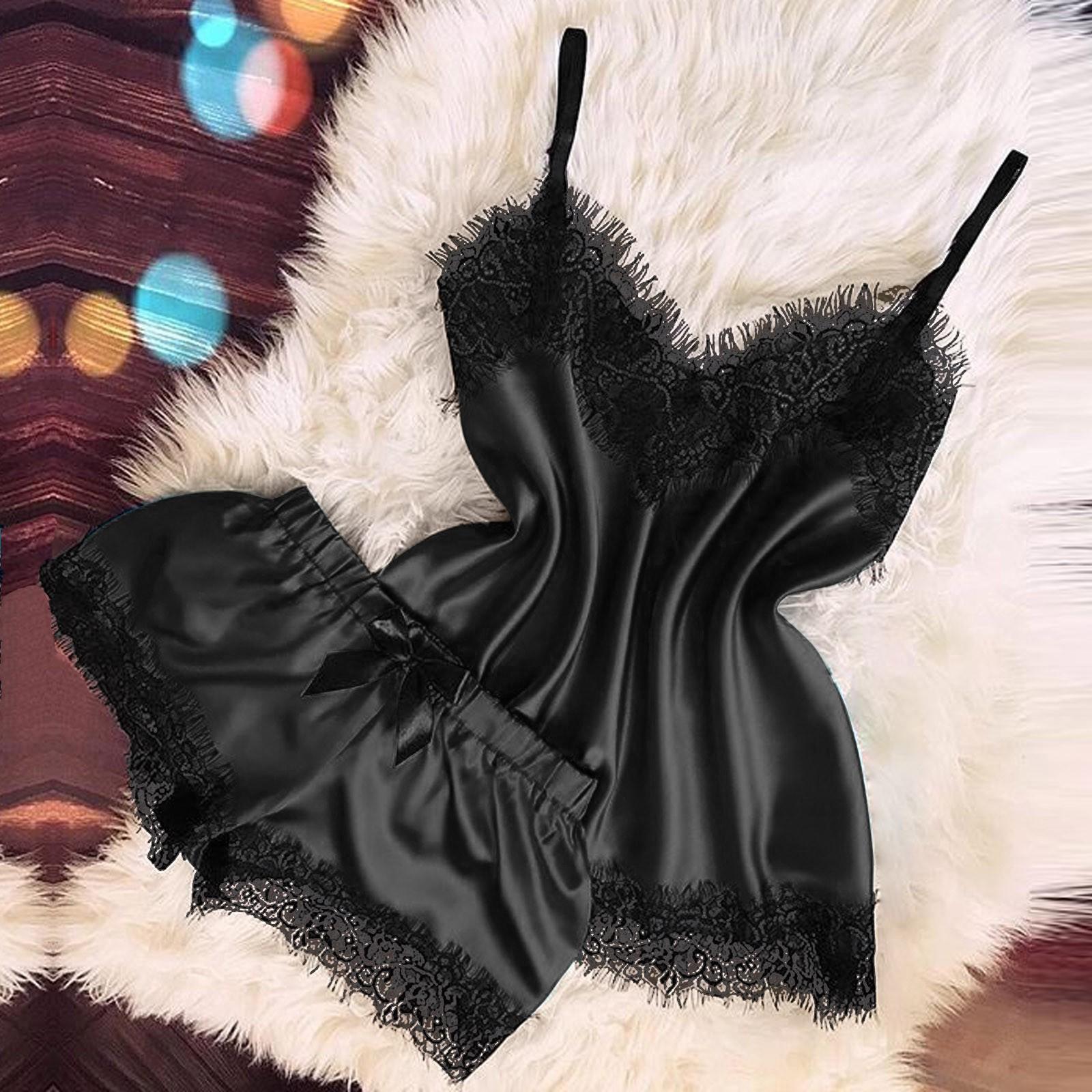 Sexy Lingerie Women Sleep Wear Camisole Bow Shorts V-neck