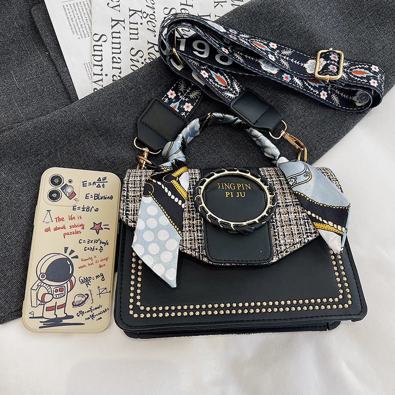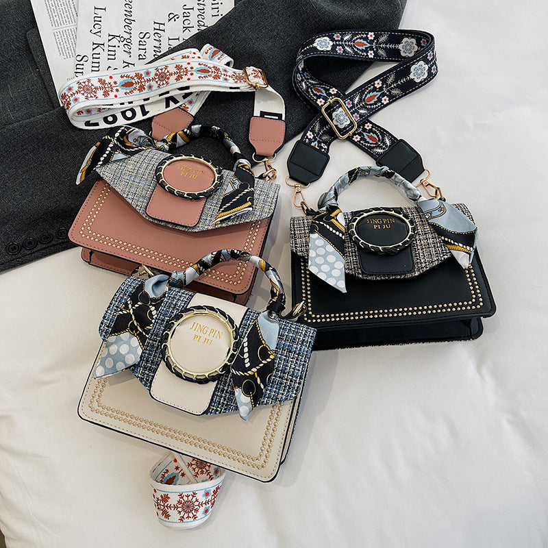 Bag women's bag new 2021 autumn and winter contrast color shoulder bag fashion casual small square bag PU simple hand-held messenger bag