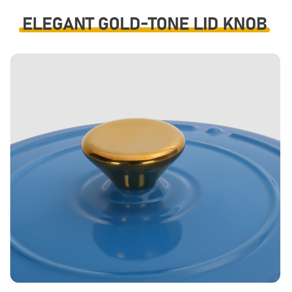 Cast Iron 6QT Cooking Pot - Gradient Blue - Includes Two Silicone Gloves - Enamel Pot