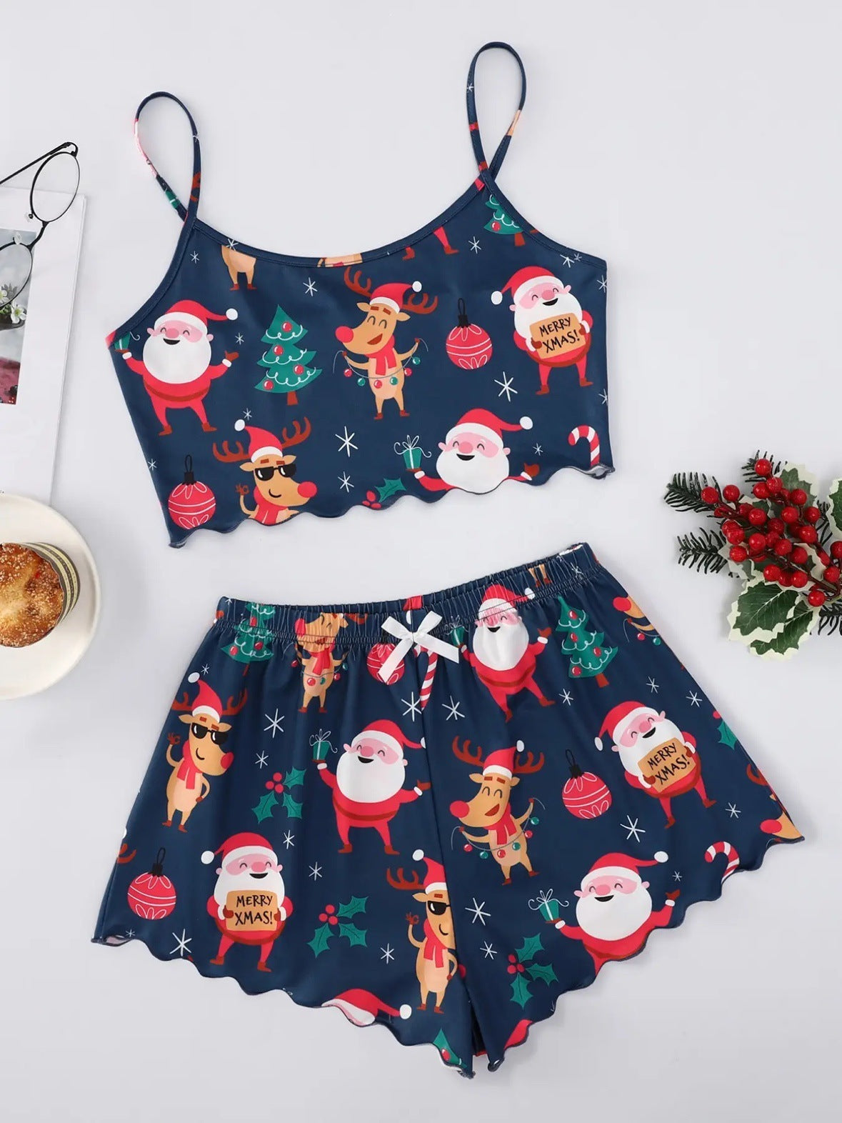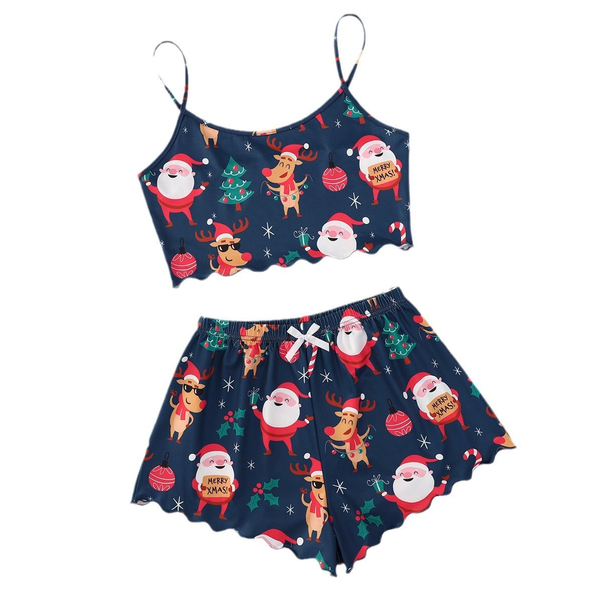 Christmas Old Printed Vest Camisole Top Shorts Home Wear Suit