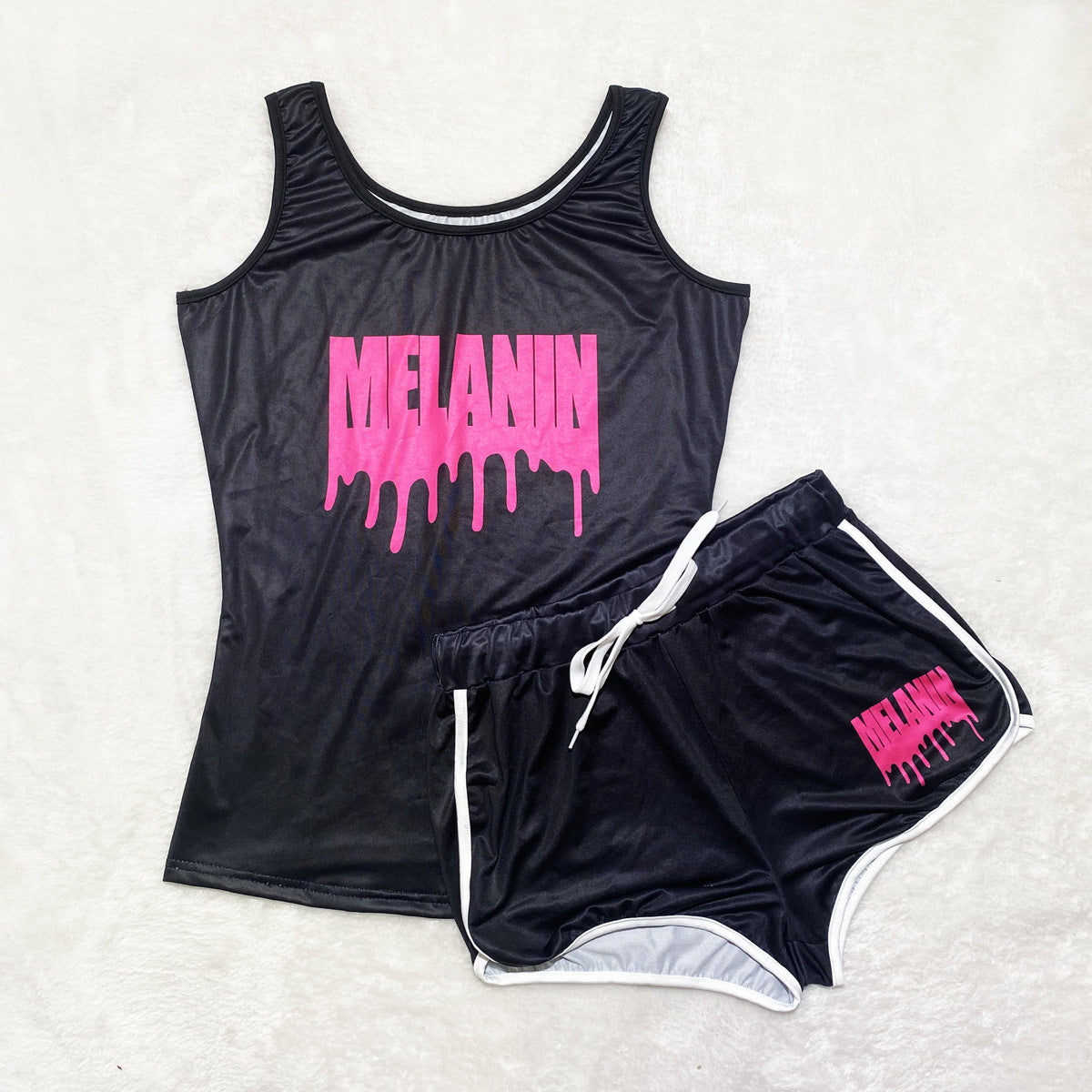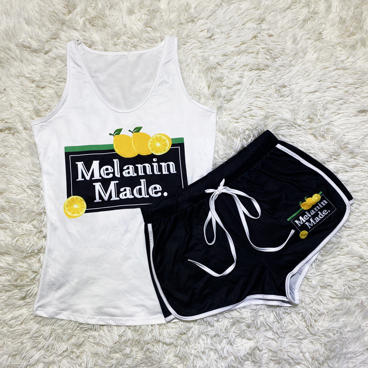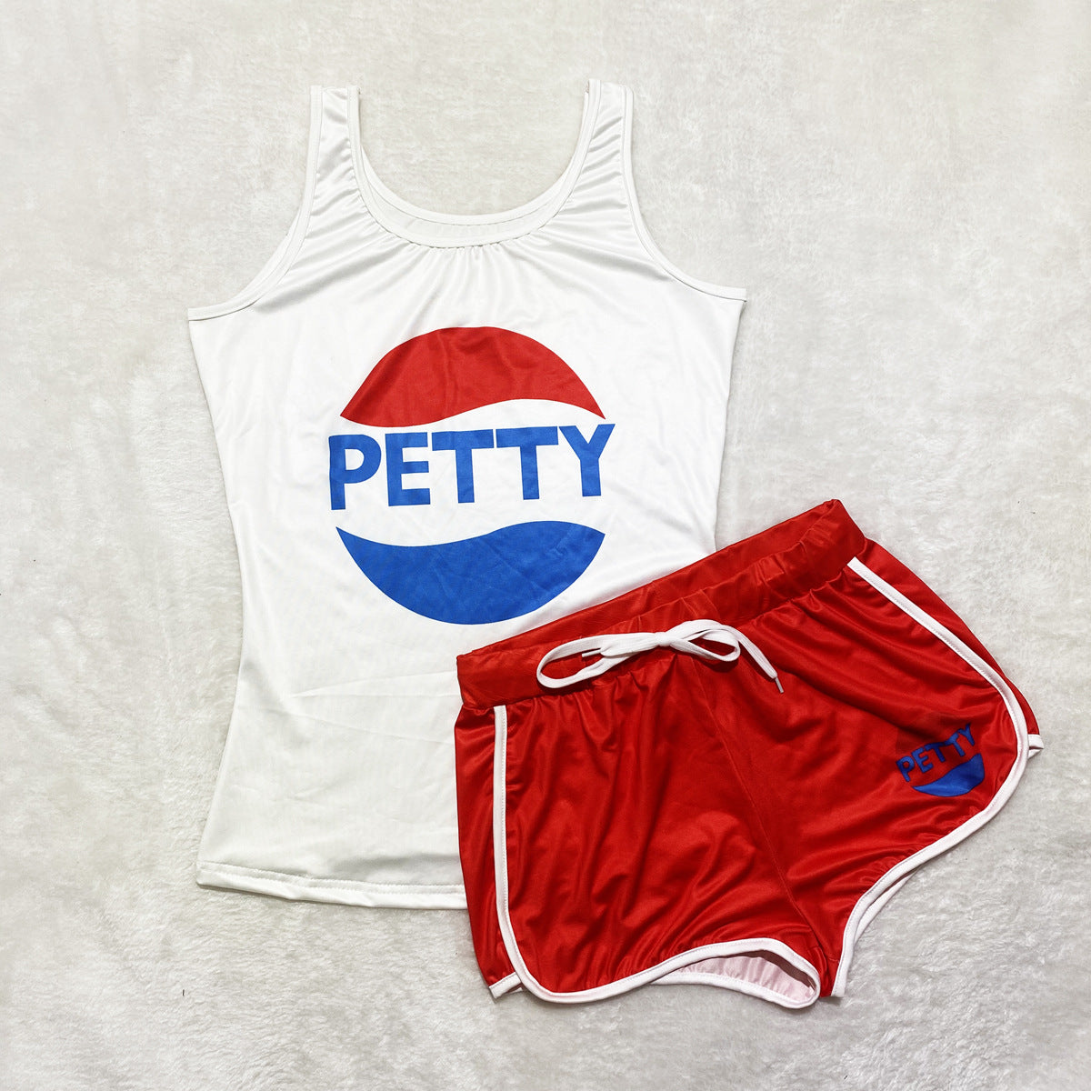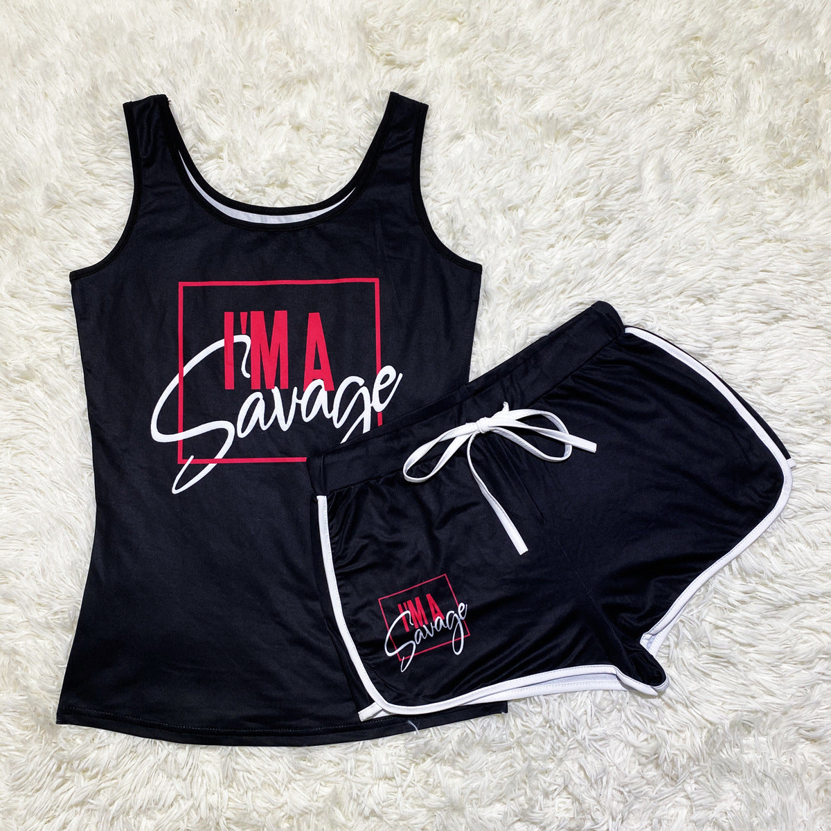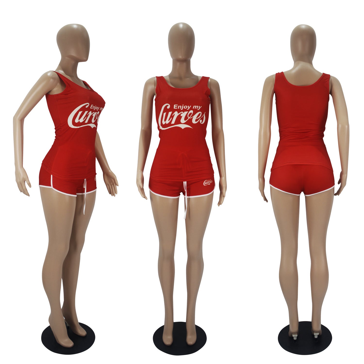 D9347 Amazon hot sale European and American women's clothing sexy graphic print suspender shorts suit yoga pants suit