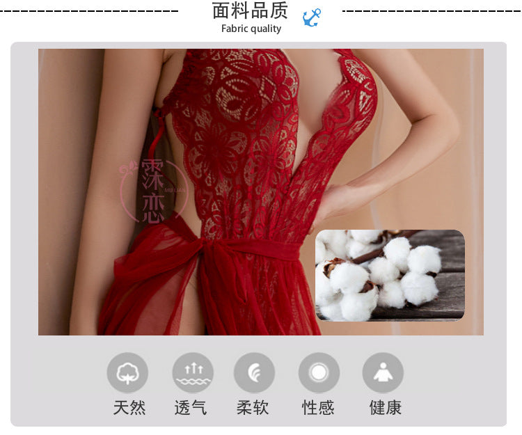 European and American new erotic lingerie ladies sexy lace jumpsuit see-through mesh temptation skirt pajamas set