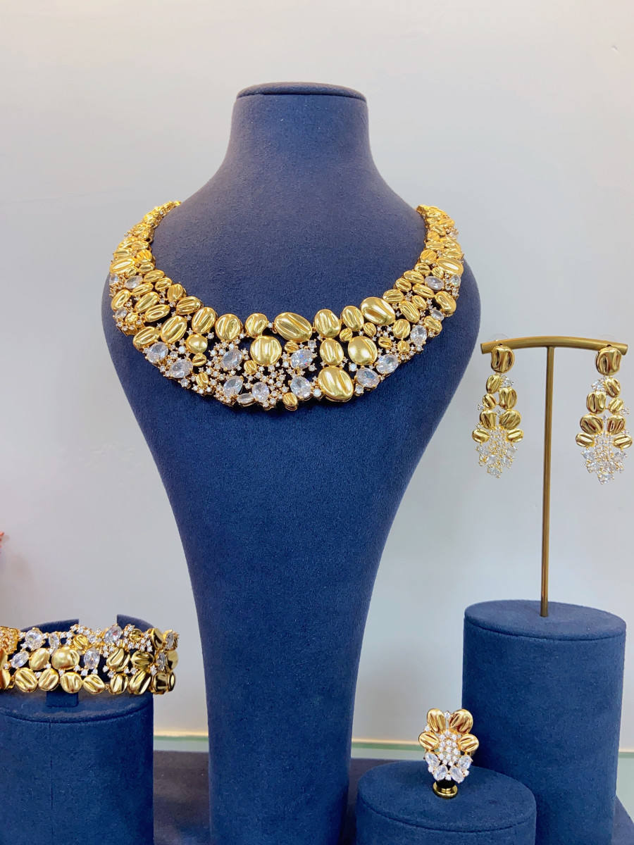 Exaggerated Necklace And Earring Wedding Set, Luxurious And Fashionable