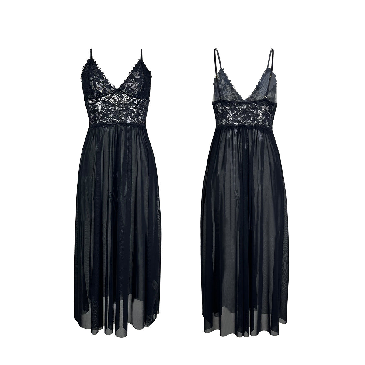 Feiyun large size sexy lingerie sexy mesh lace pajamas slit suspender skirt long home clothes nightdress 681