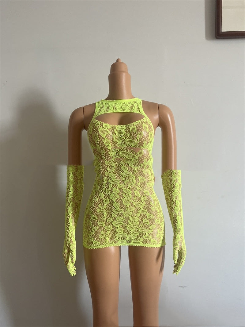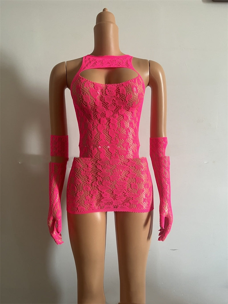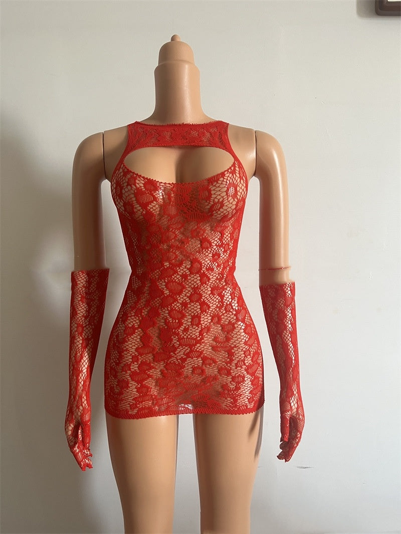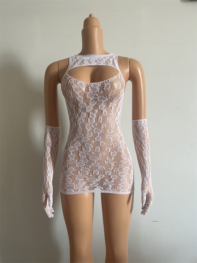Fishnet Clothes Sheath Fishnet Clothes Skirt Hollow Gloves Suit