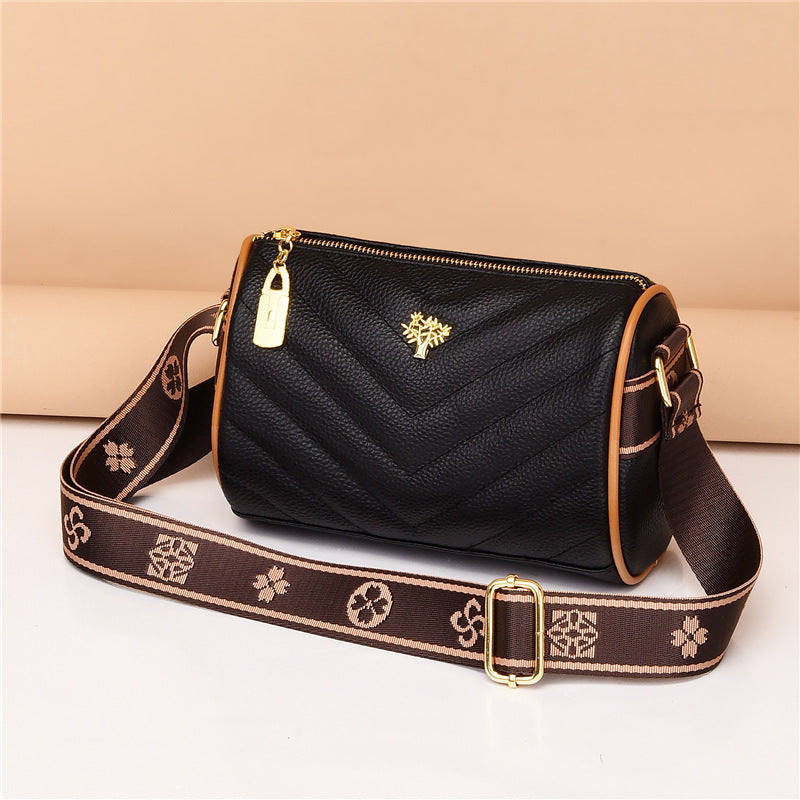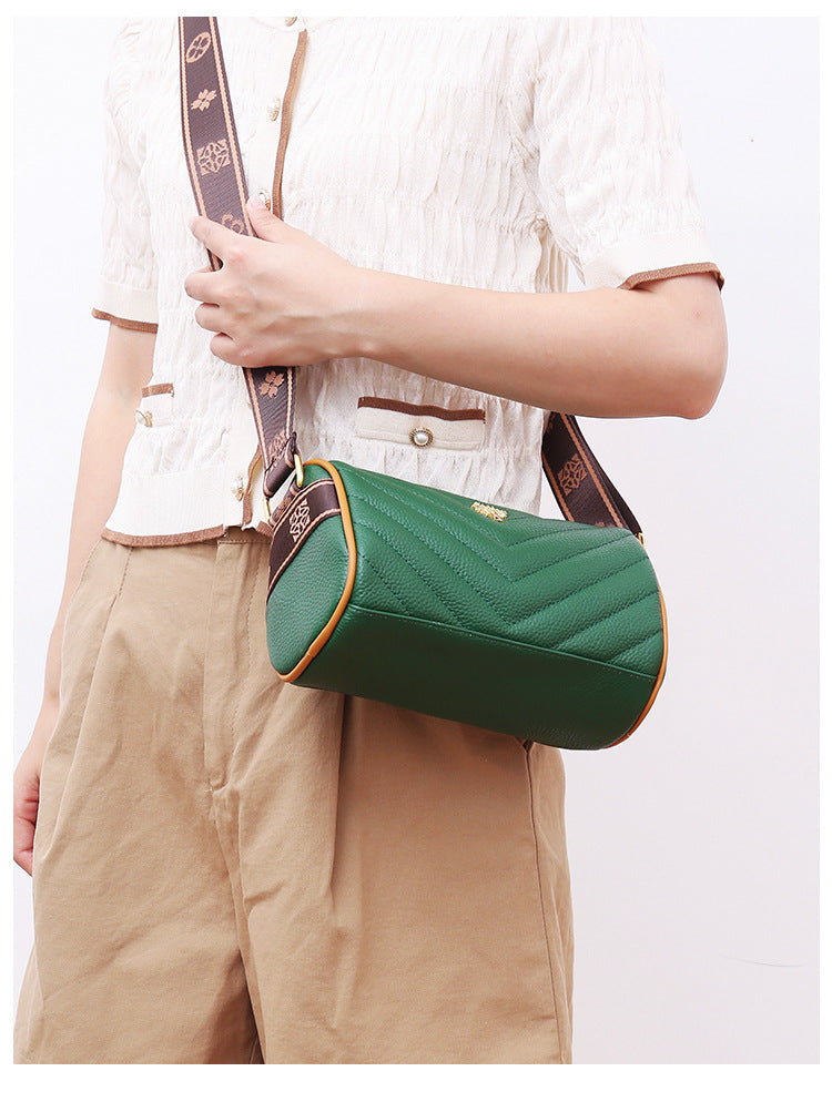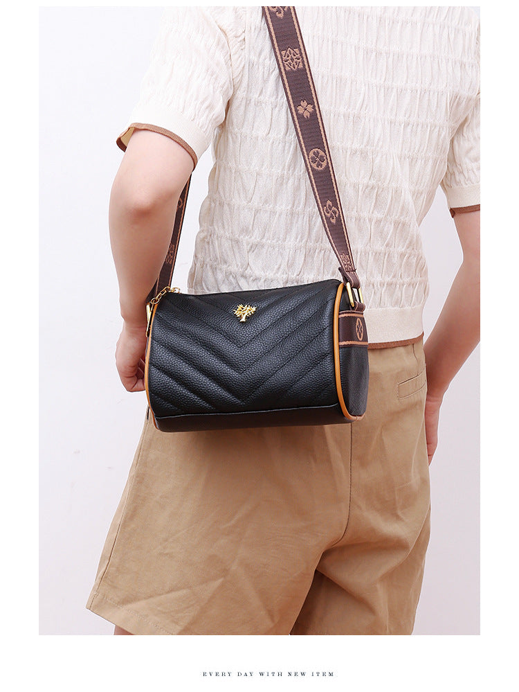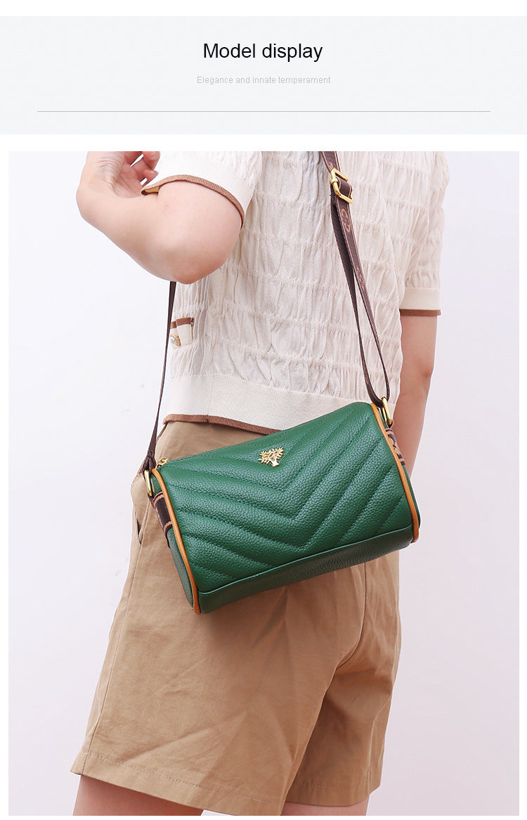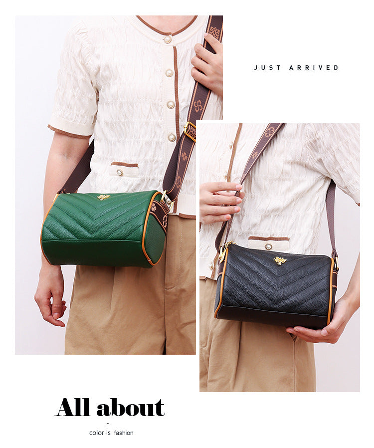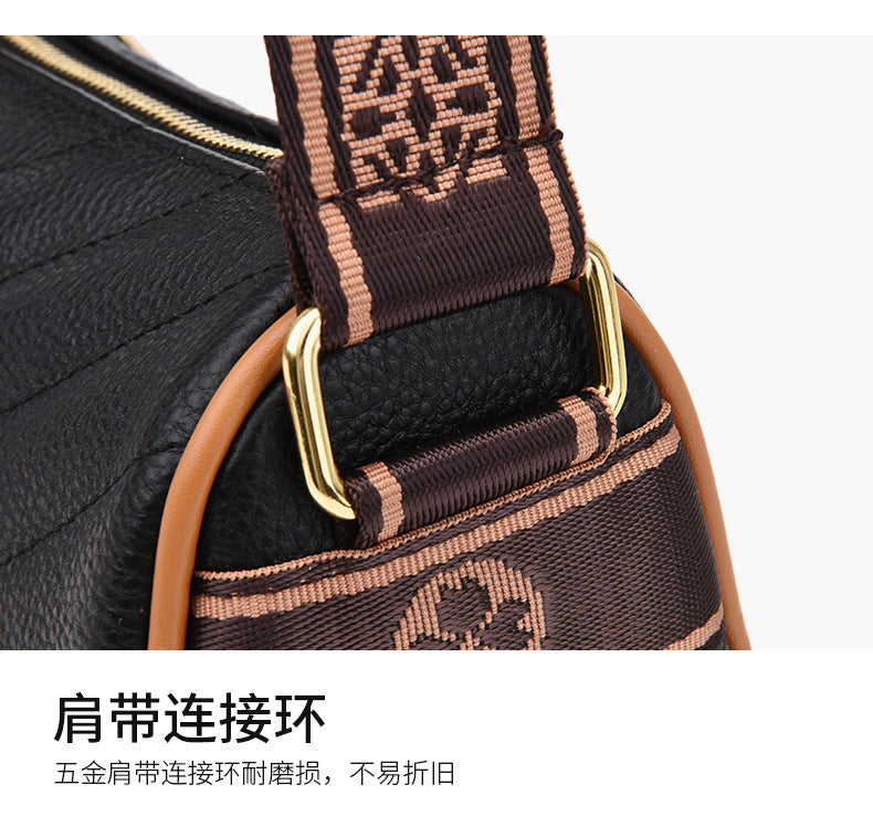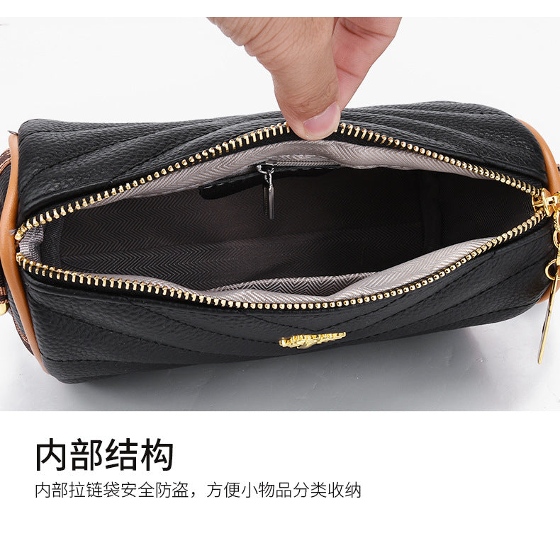 Genuine leather bag women's bag 2022 new head layer cowhide large capacity embroidery thread shoulder Messenger bag soft leather pillow bag trendy