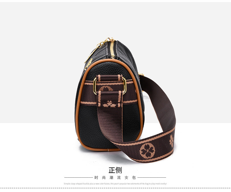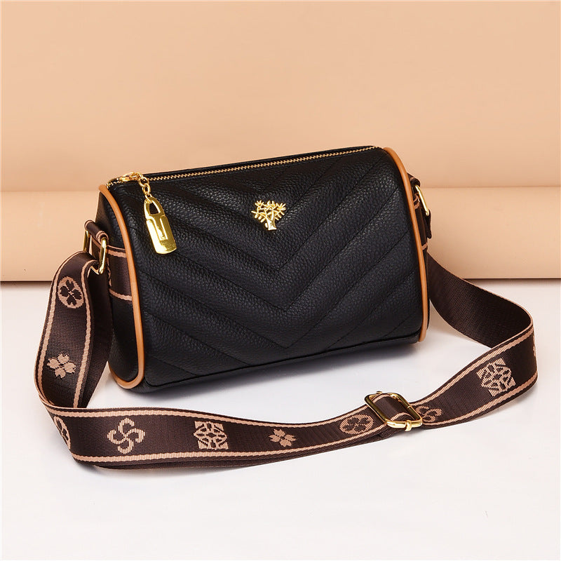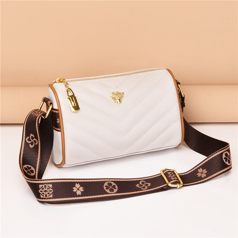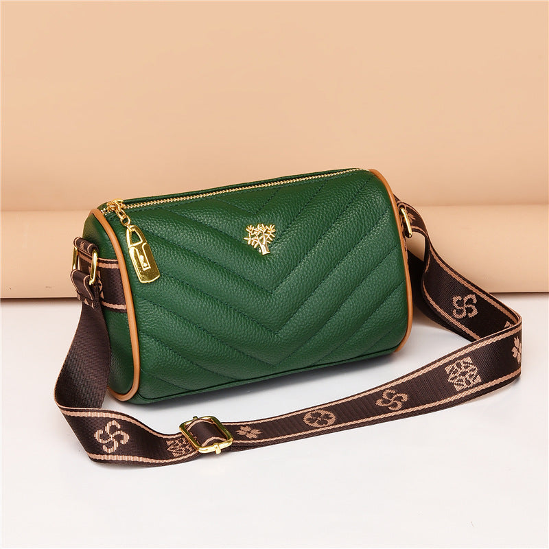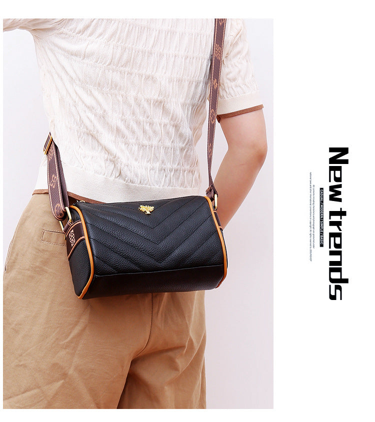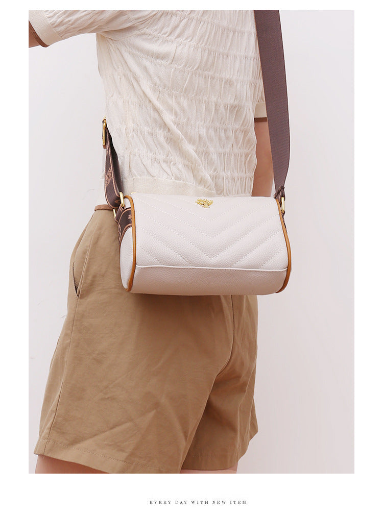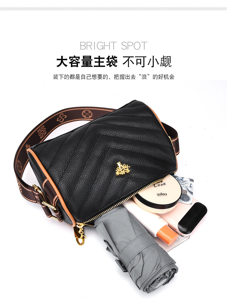 Genuine leather bag women's bag 2022 new head layer cowhide large capacity embroidery thread shoulder Messenger bag soft leather pillow bag trendy