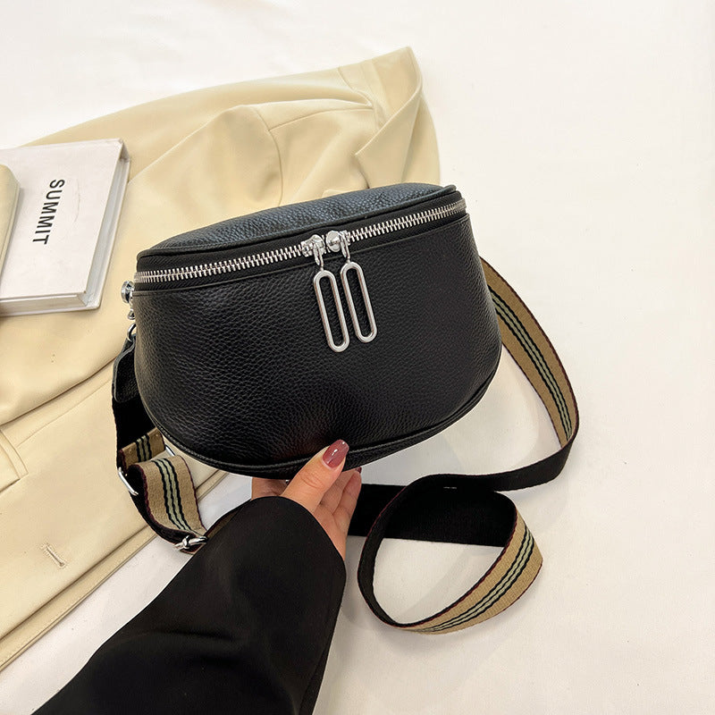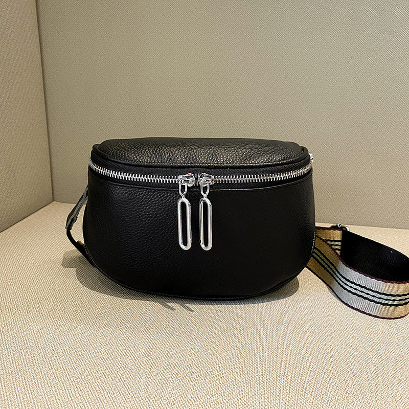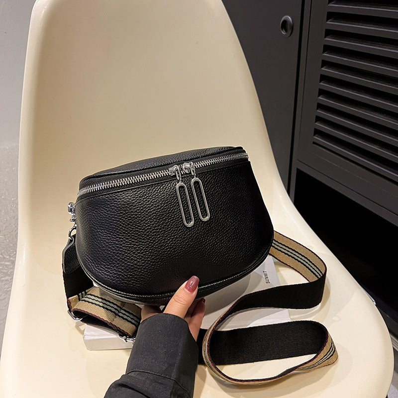 Genuine leather fashion saddle bag women's bag cross-border 2023 new crossbody bag double zipper first layer cowhide small bag shoulder bag