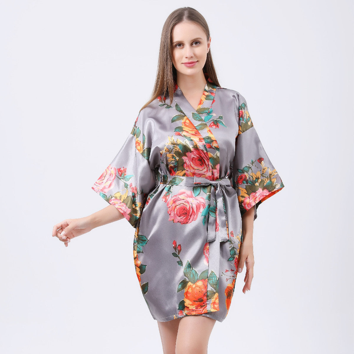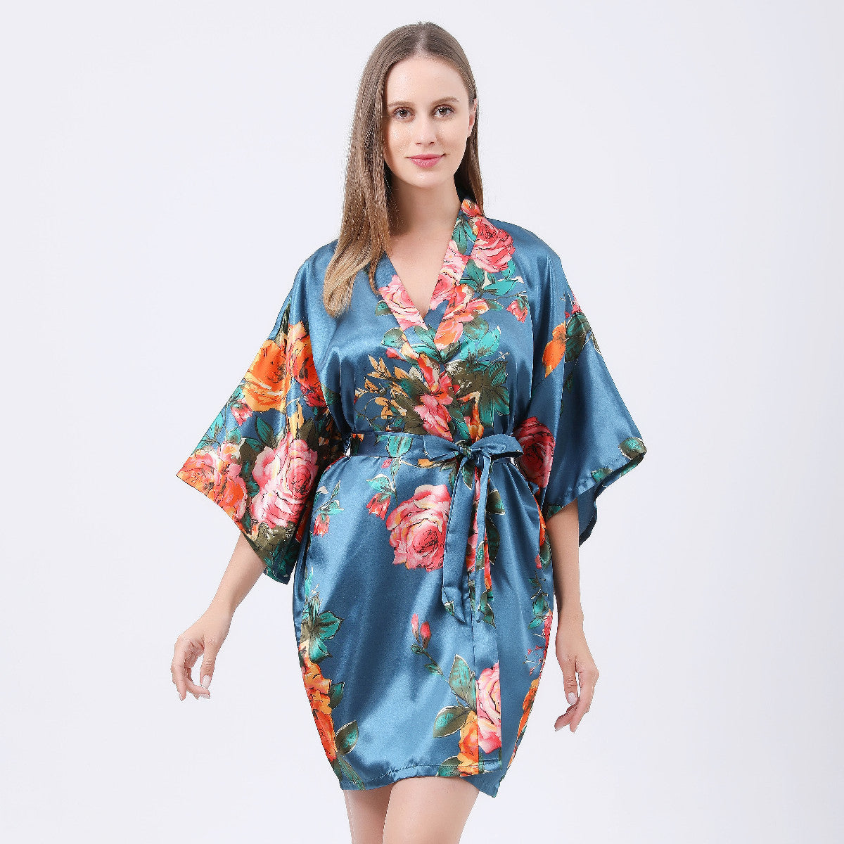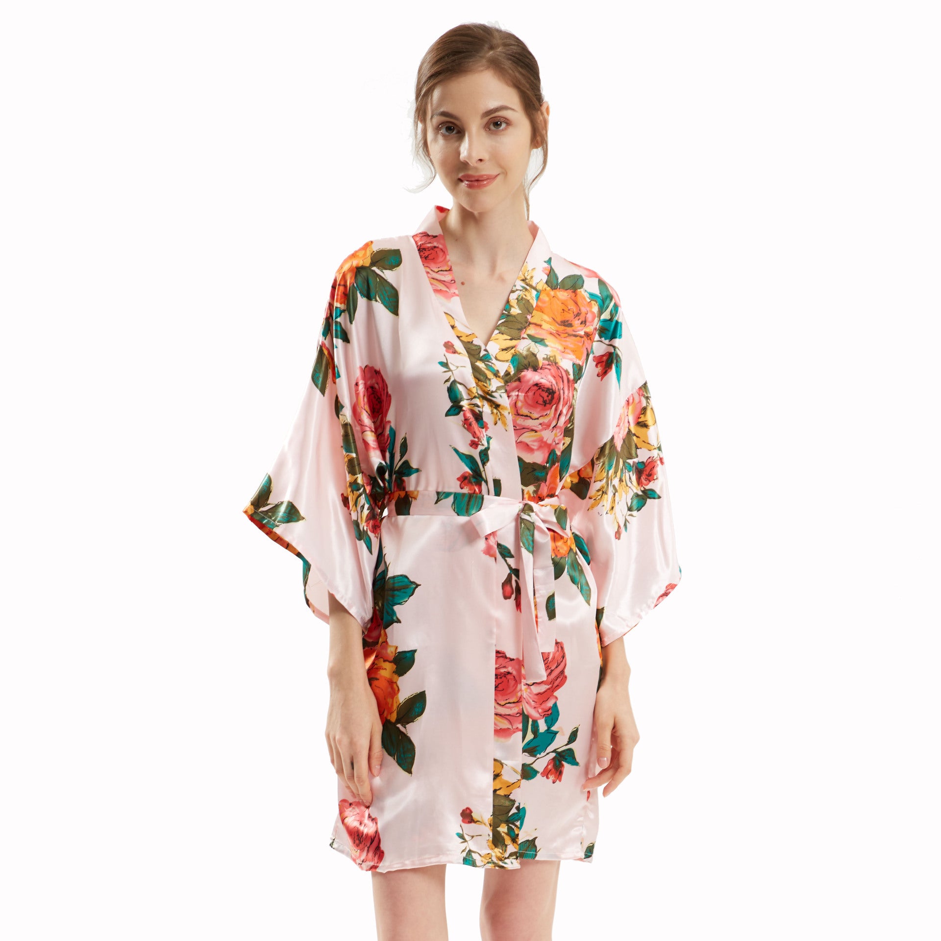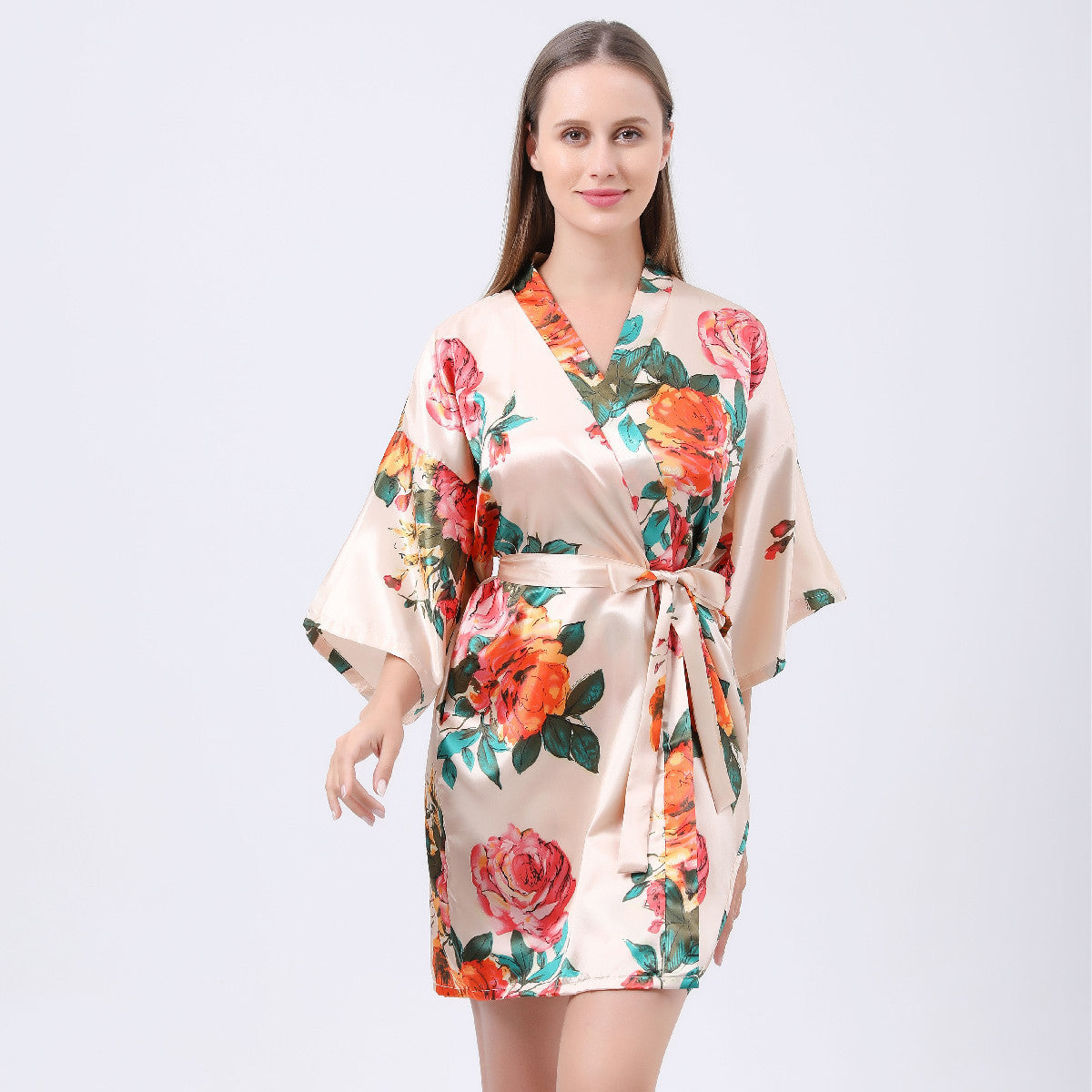 Hand Painted Peony Bridal Robe Morning Gowns Bathrobe Cardigan