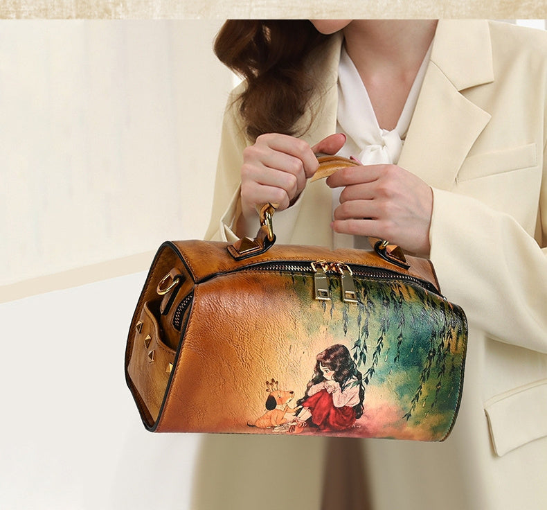 Handdrawn Gradient Women's Handheld Multifunctional Single Shoulder Diagonal Span Large Capacity