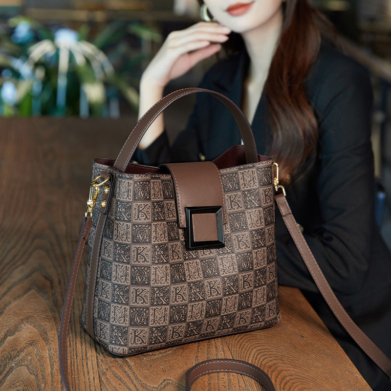 High-end light luxury women's bag 2022 new printed bucket bag, versatile and fashionable women's portable shoulder bag bags