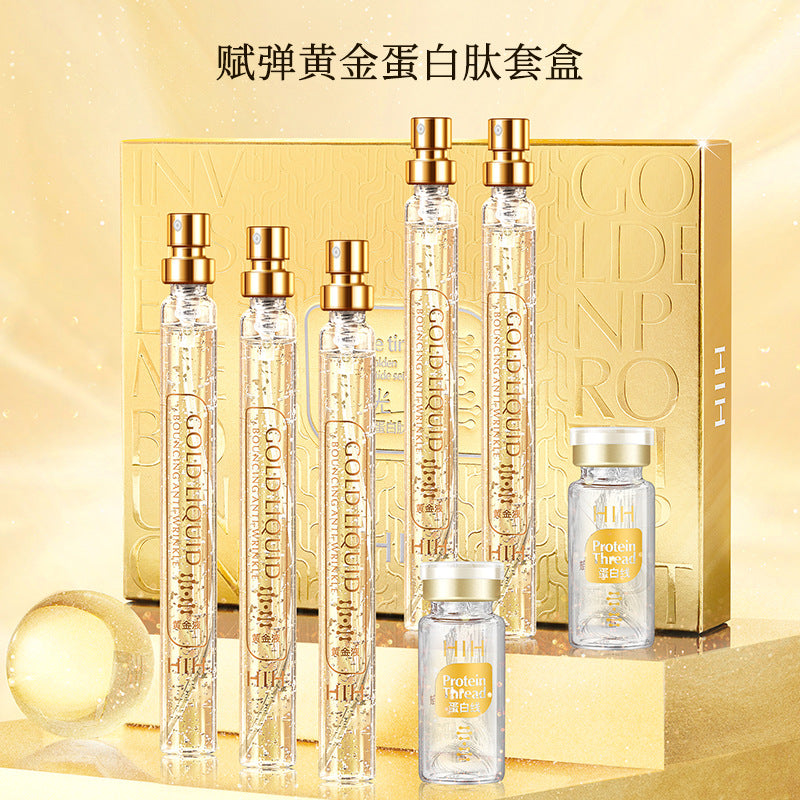 HIH Bouncy Gold Protein Peptide Set Box Essence Lifting, Fading, Tightening and Fine Grain Protein Line Carving Skin Care Set