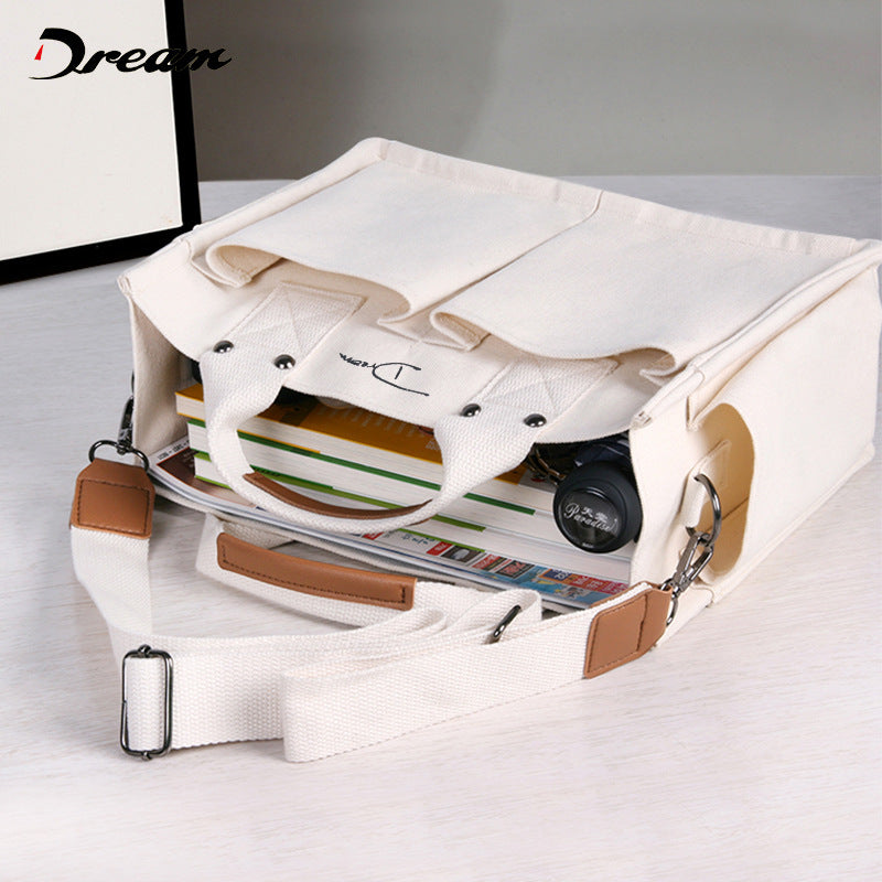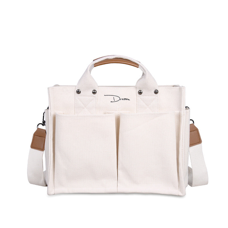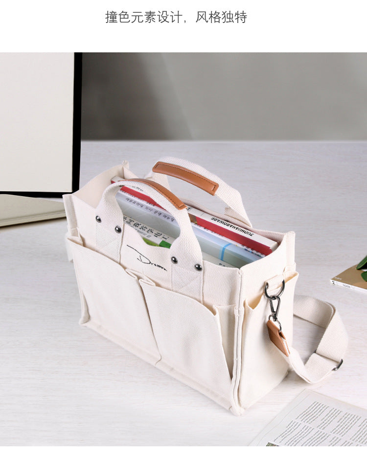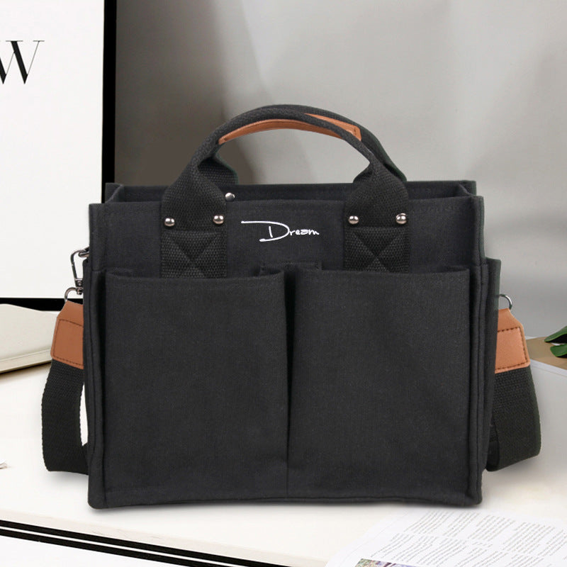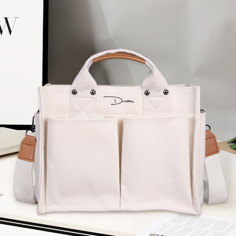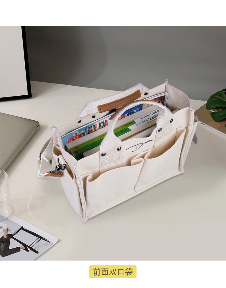 Korean version of women's bag multi-pocket handbag ins casual one-shoulder all-match Messenger bag female student large-capacity canvas bag