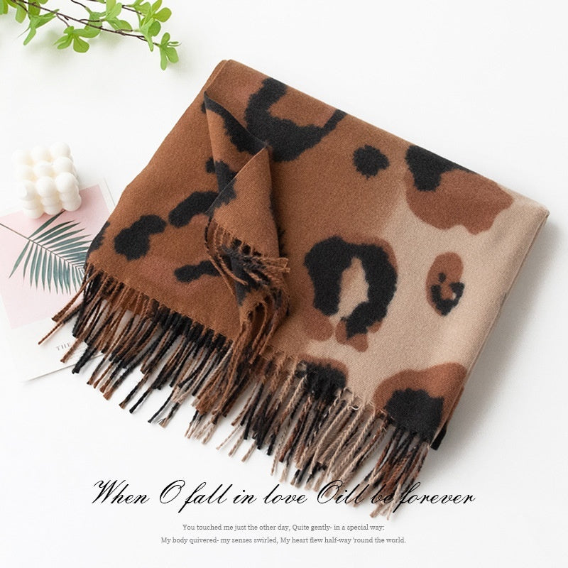 Leopard Print Women Scarf Artificial Cashmere Elegant High Sense Shawl