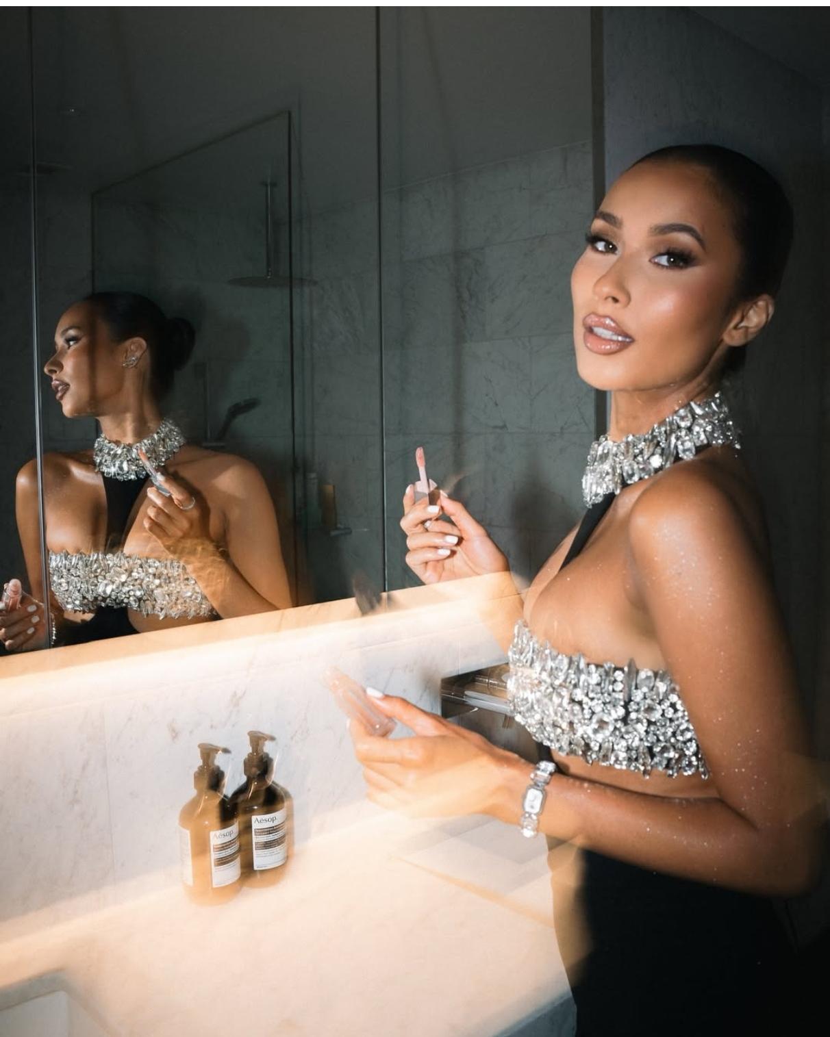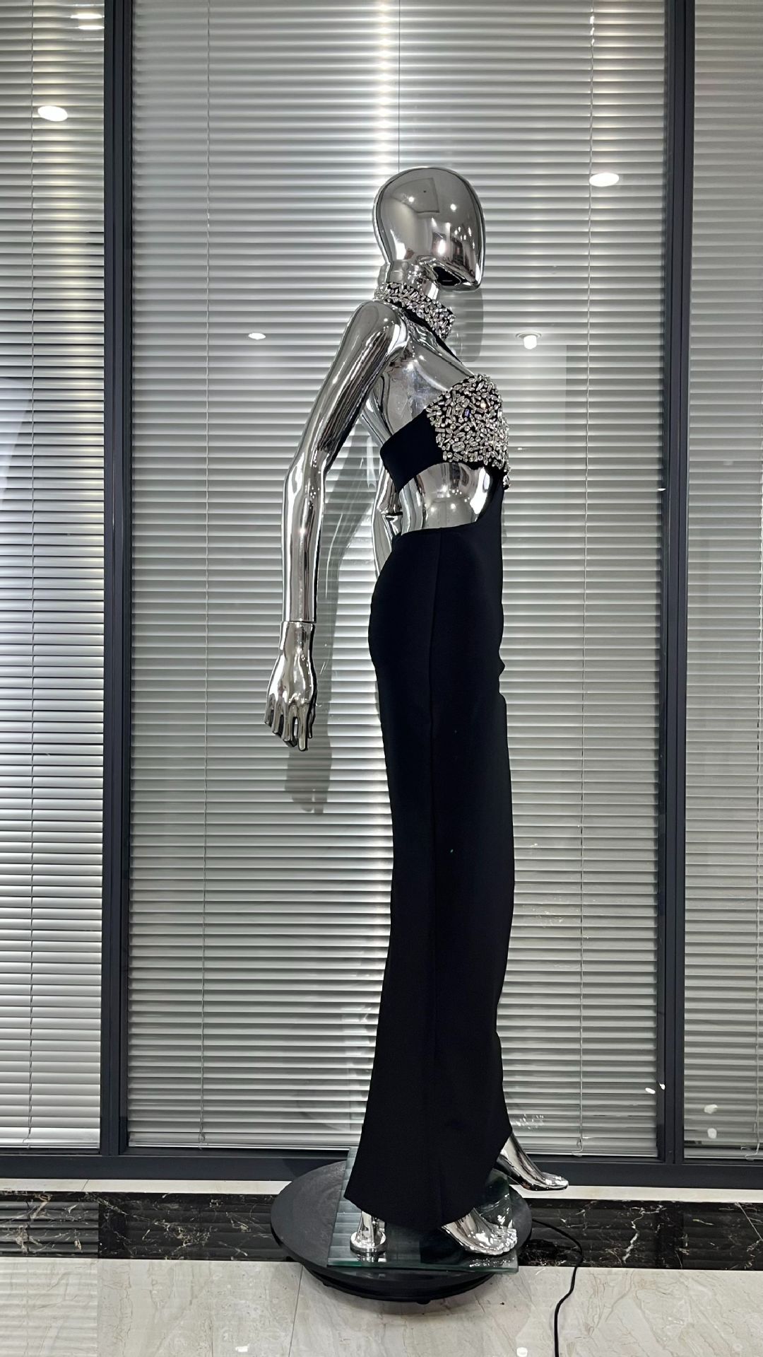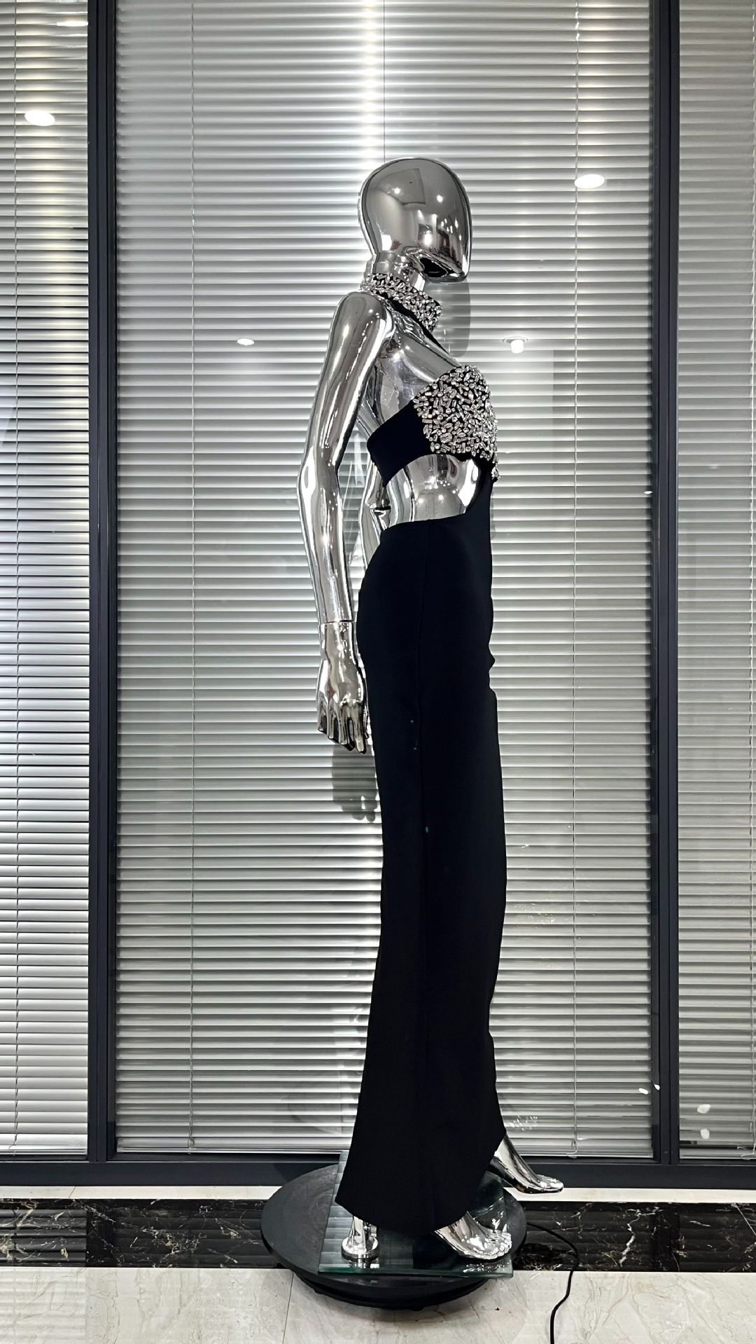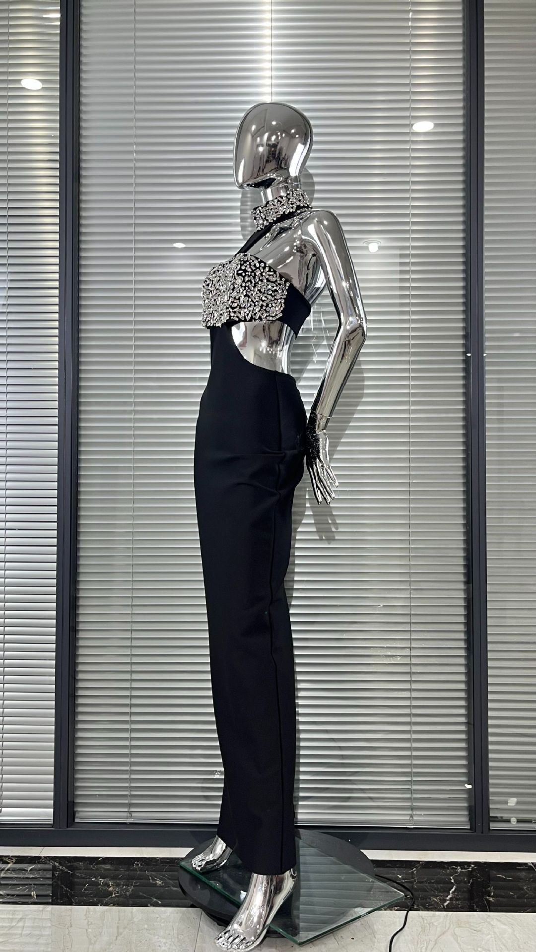 Luxury Rhinestone Fashion Halter Sexy Cutout Black Bandage One-piece Dress