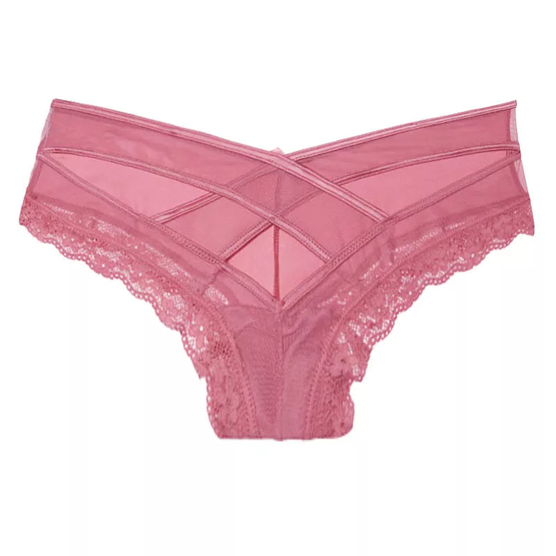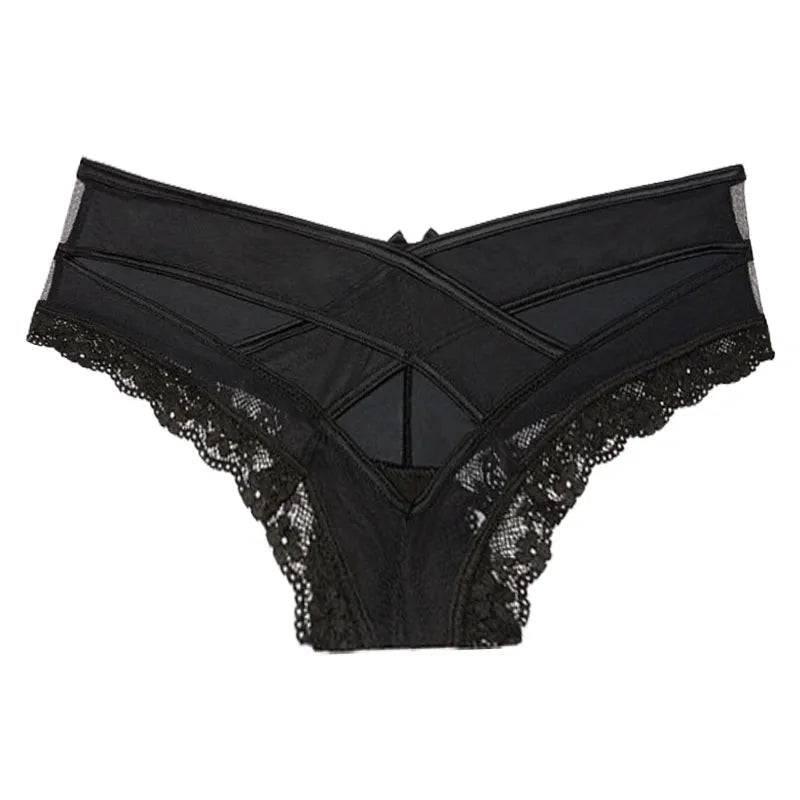 Meet'r Sexy Panties Women Lace Low-Waist Solid Brief Female Underwear Ladies Cross Strap Hollow Out Lingerie G String Underpant