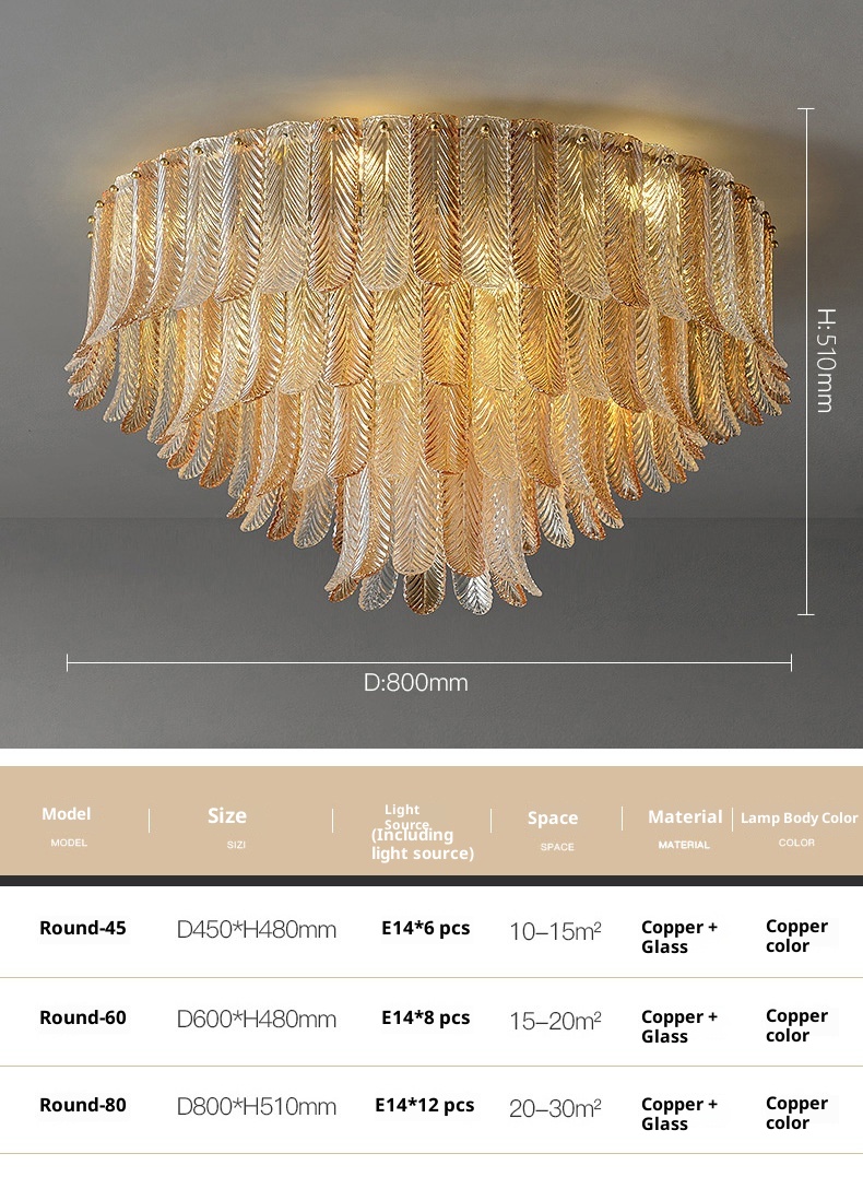 Modern Light Luxury Bedroom Ceiling Lamp Simple Copper