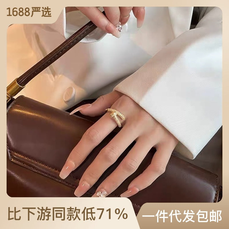 Nail opening adjustable ring for women light luxury niche exquisite full diamond index finger ring personalized zircon ring tail ring for men