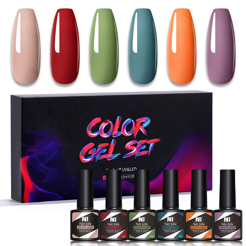 Nee Jolie cross-border new product wholesale 6 color box set nail polish glue set UV phototherapy glue base glue sealer