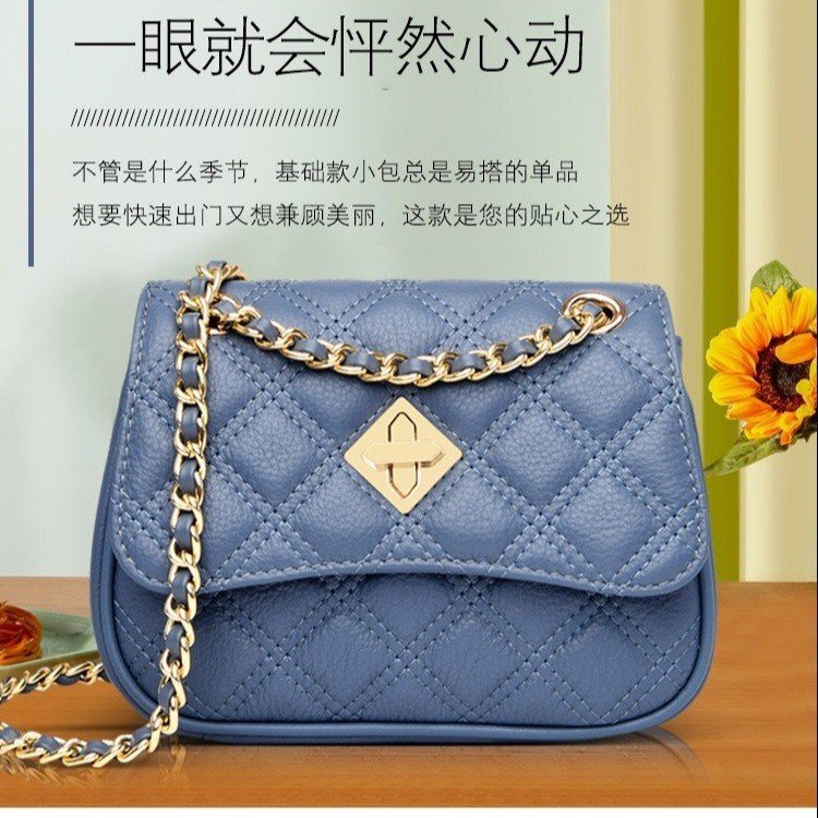 Niche women's bag genuine leather 2023 summer new ins messenger bag genuine leather all-match chain rhombus pattern shoulder bag