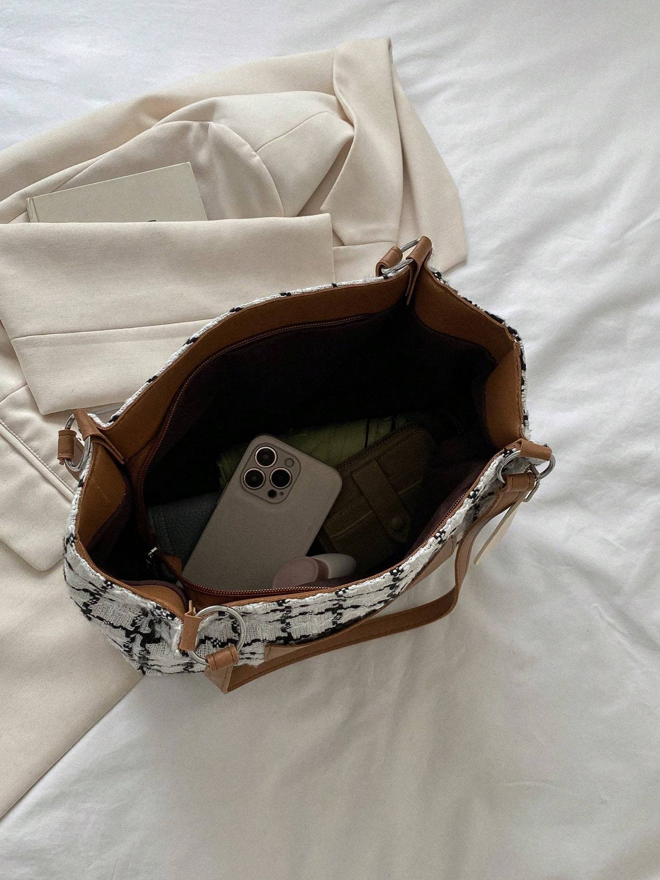 Plaid Shoulder Bag For Women, Large Capacity, Fashionable Commuting Plaid Casual Tote Bag With Pendant