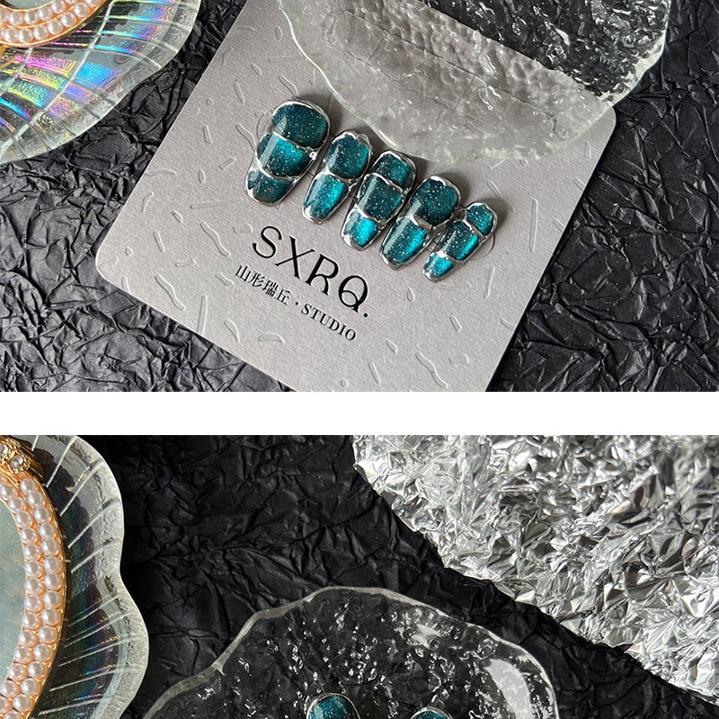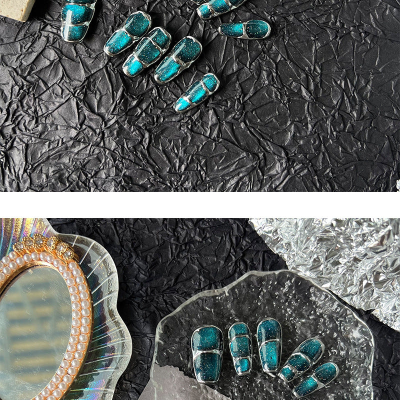 Pure Hand Drawing Wear Armor Blue Starry Sky Cat Eye Long Ladder Removable UV Nail