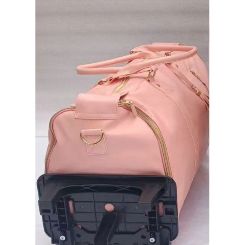 Ready-to-go travel foldable women's clothing luggage bag with trolley, outdoor fitness bag, multi-function overnight storage