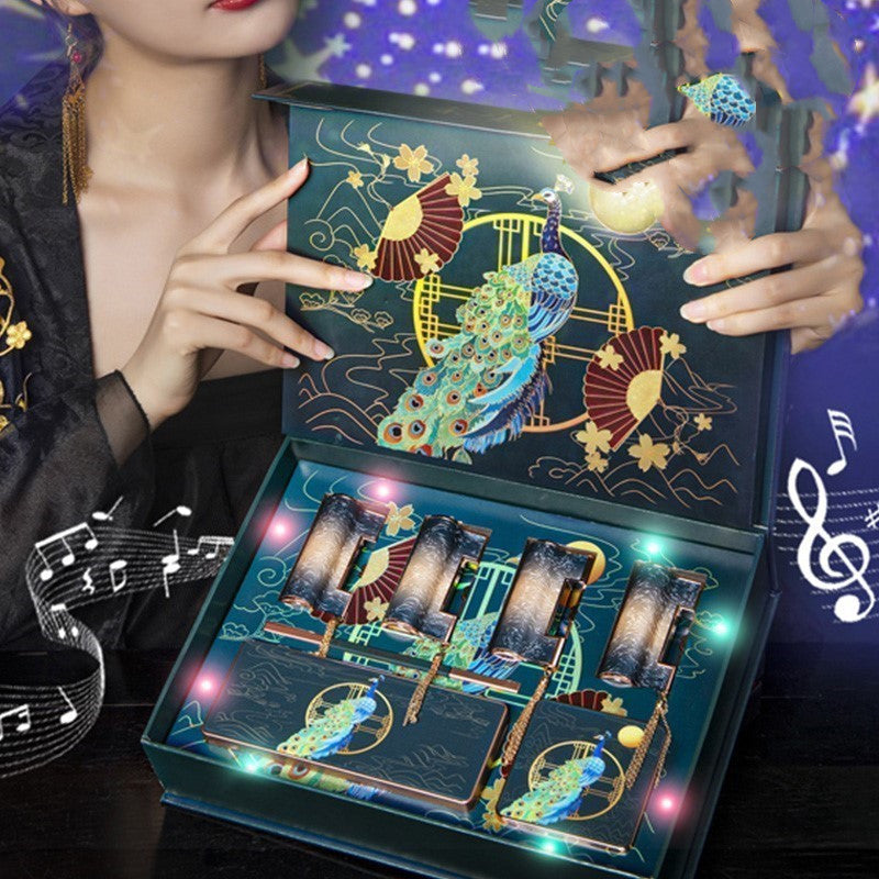 Color classification: 1 Style: Yilu Youyou Lock Core Makeup 7-piece Set Gift Card2 styles: Love Lock Music Projection 7-piece Set Gift Card+Concentric Love Lock 4 Lipstick Set Gift Card+3 Style: Tongxin Dingqing Lock Makeup 6-piece Set Gift Card+Yilu Youyou Music Makeup 8-piece Set Gift Card 4 Style: Qingyu Furong Double Layer Makeup 10-piece Set Gift Card+Cosmetics