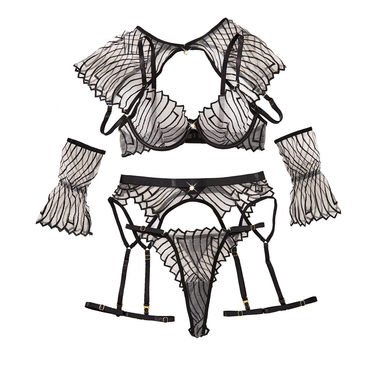 See-through Sexy Design Embroidered Shawl Garter Sexy Underwear