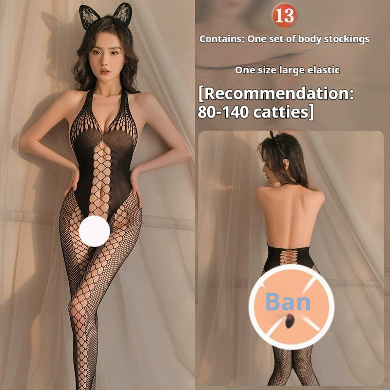 Sexy Lingerie Open-end Passion Transparent Sense Mesh Bodysuit
