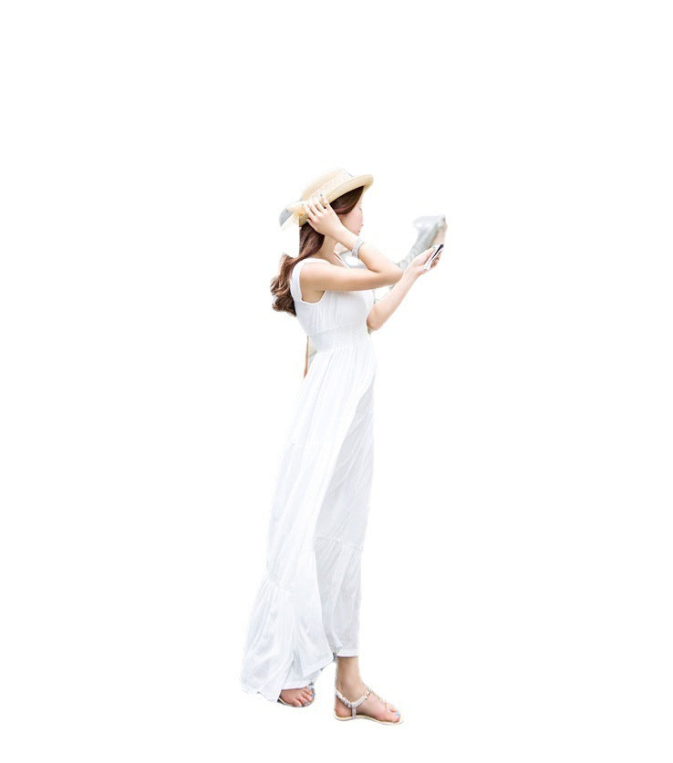 Solid Color High Waist Polka-dot Swing Chiffon Sling Dress